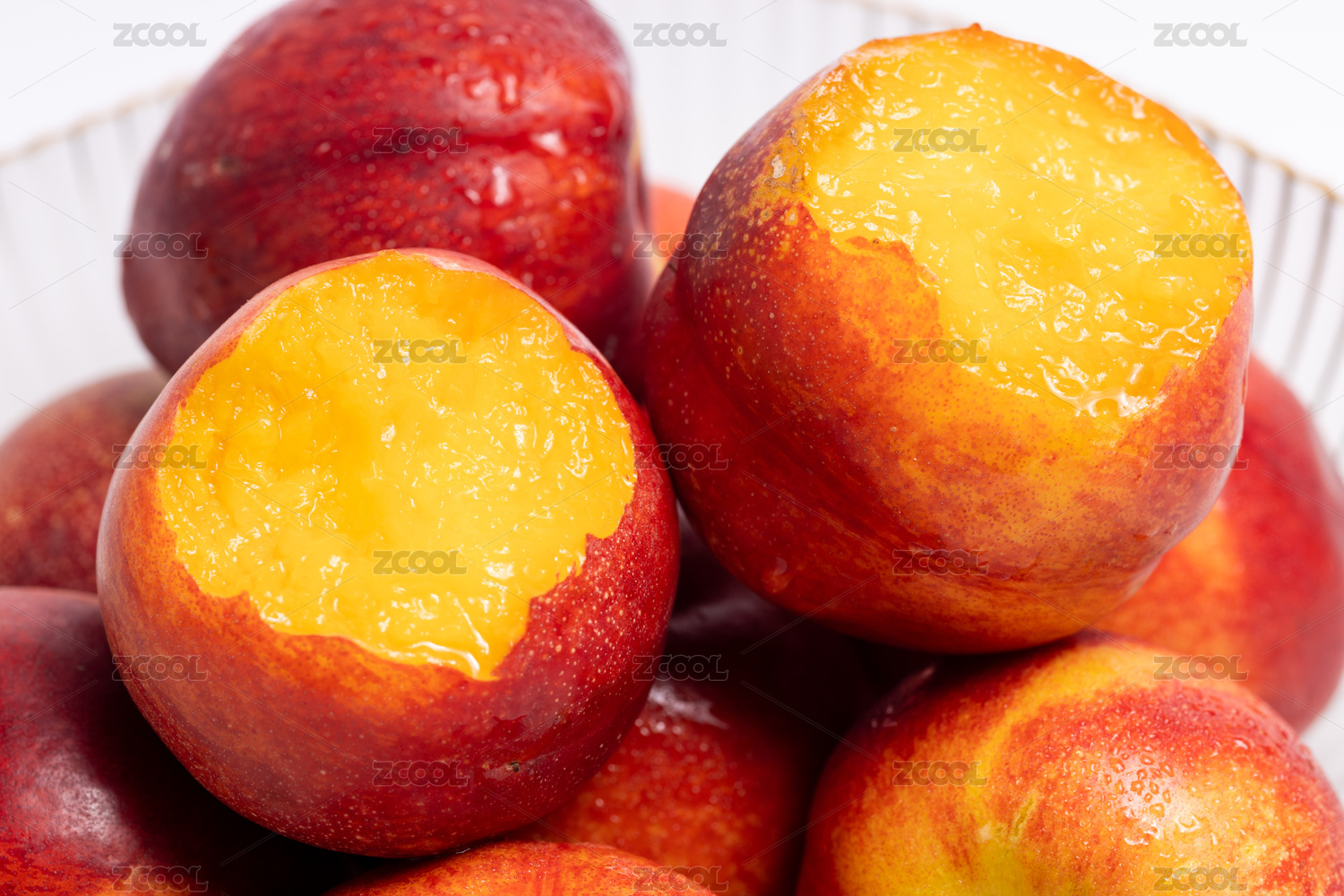 一堆新鲜油桃和油桃果肉