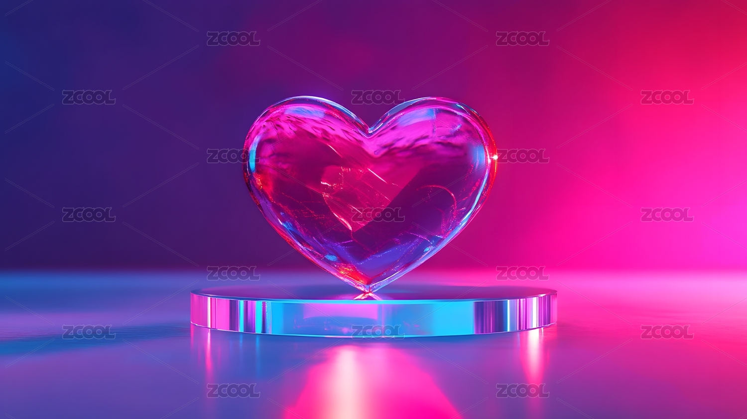 霓虹灯下的玻璃爱心