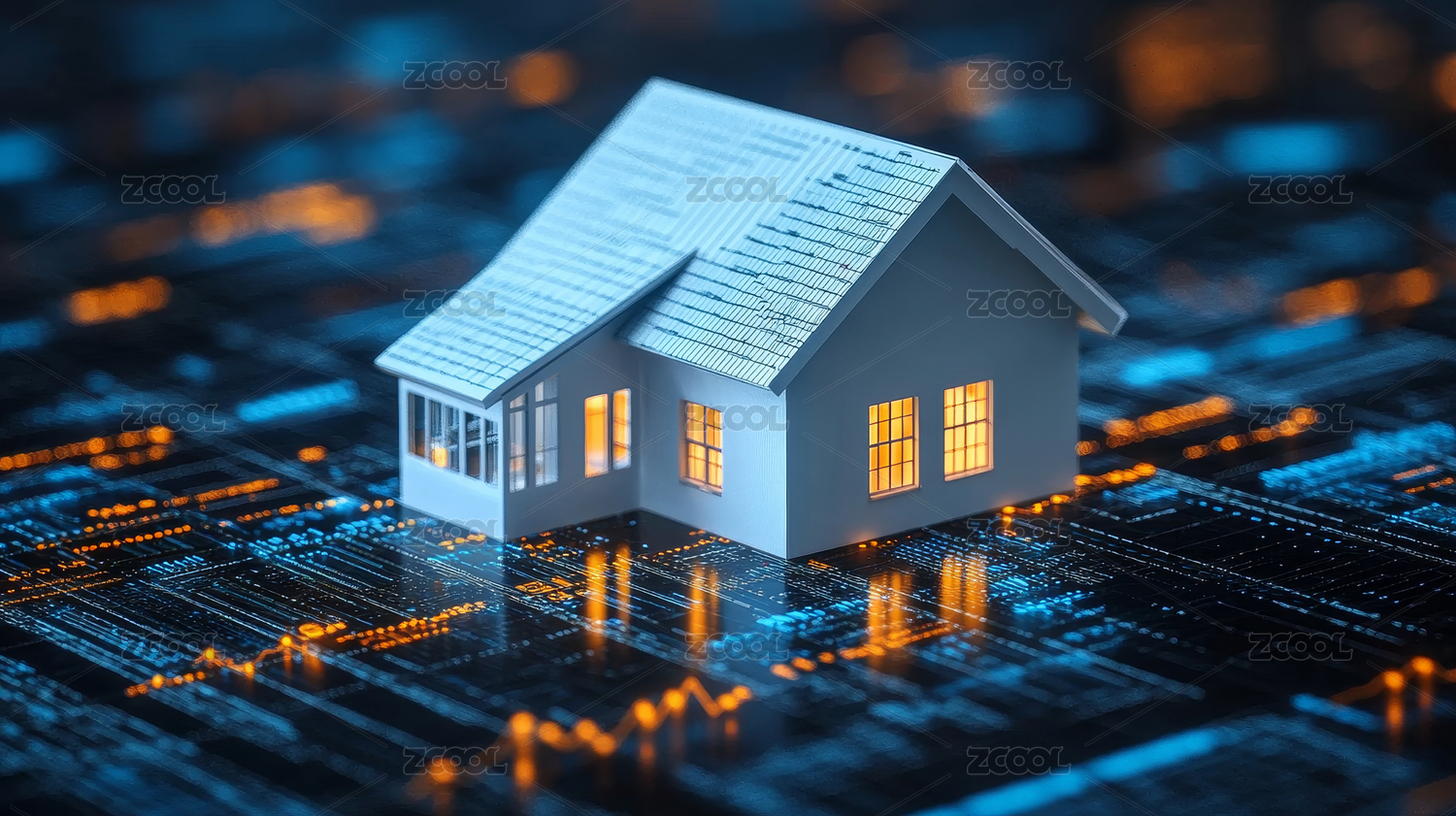 蓝顶房屋电路背景科技