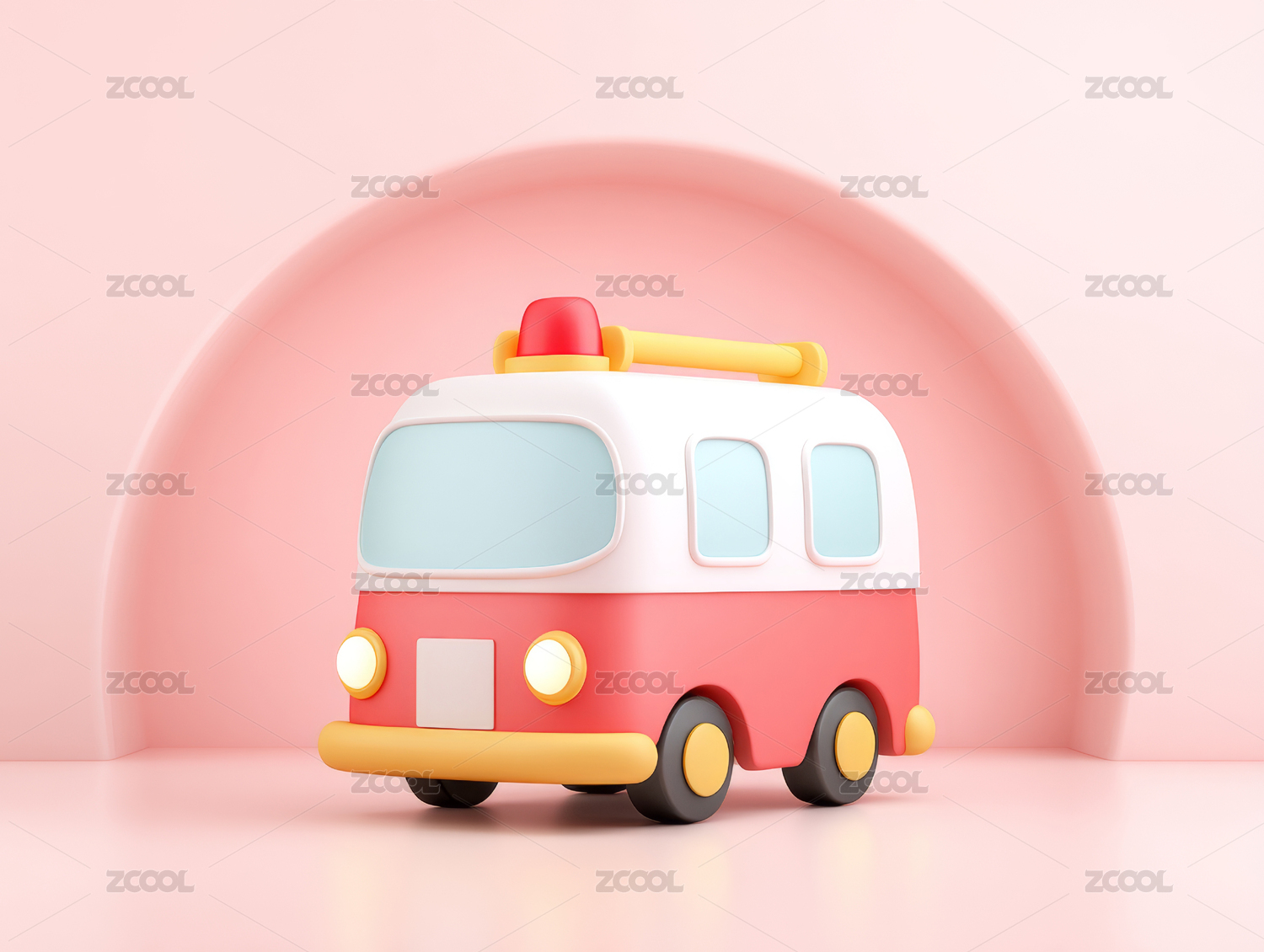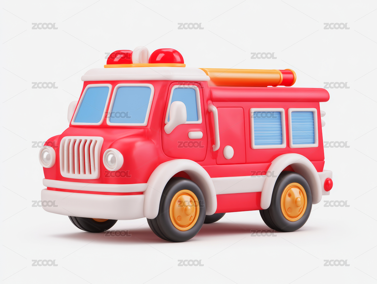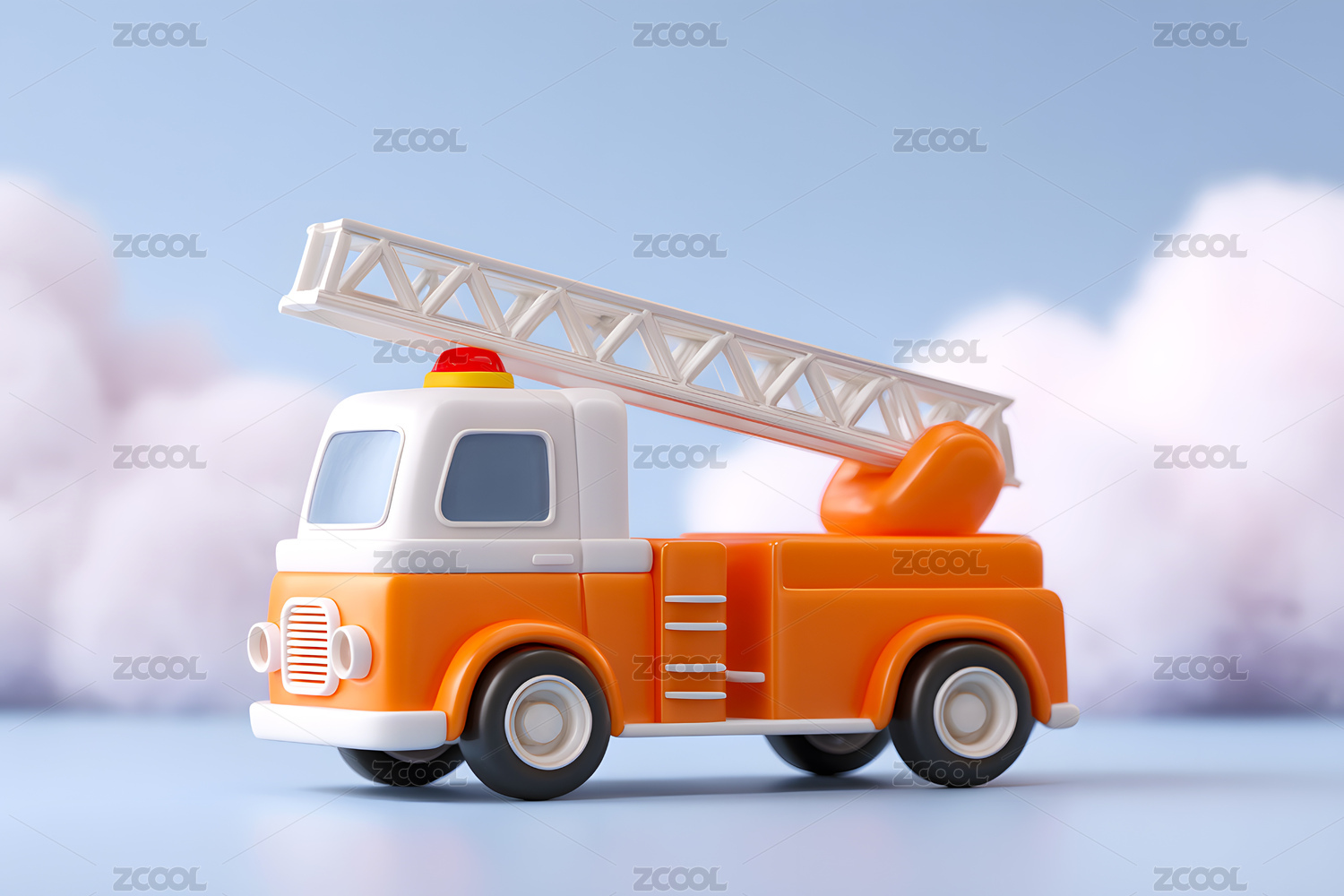消防车,玩具,卡通,红色,梯子,黄色,蓝色,粉色