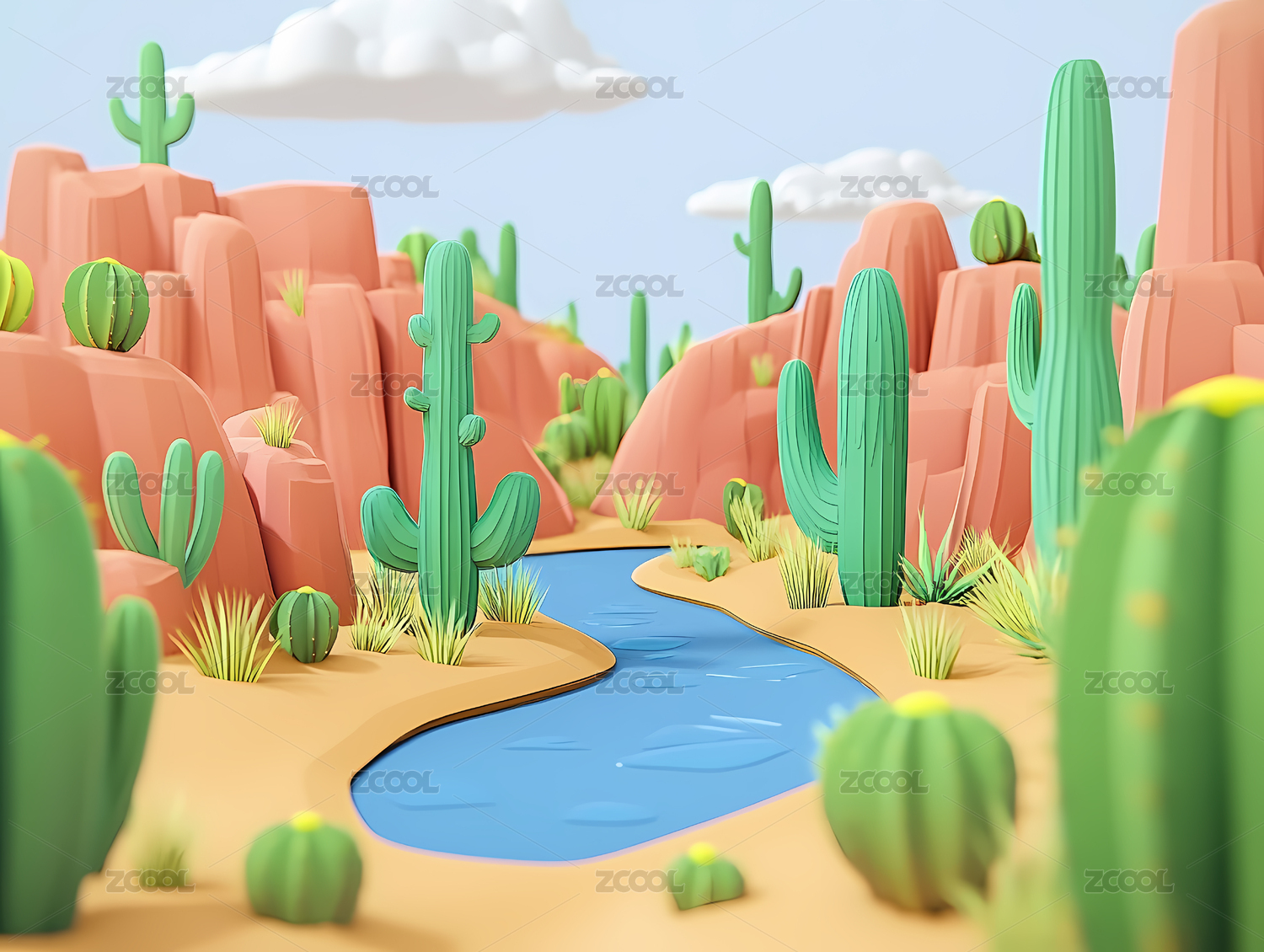沙漠,仙人掌,小径,沙丘,植物,蓝天,白云,自然,景观