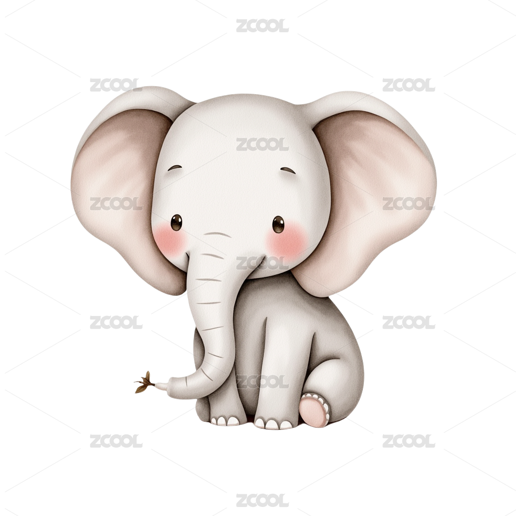 大象,卡通,可爱,微笑,耳朵,鼻子,灰色,黄色,坐姿
