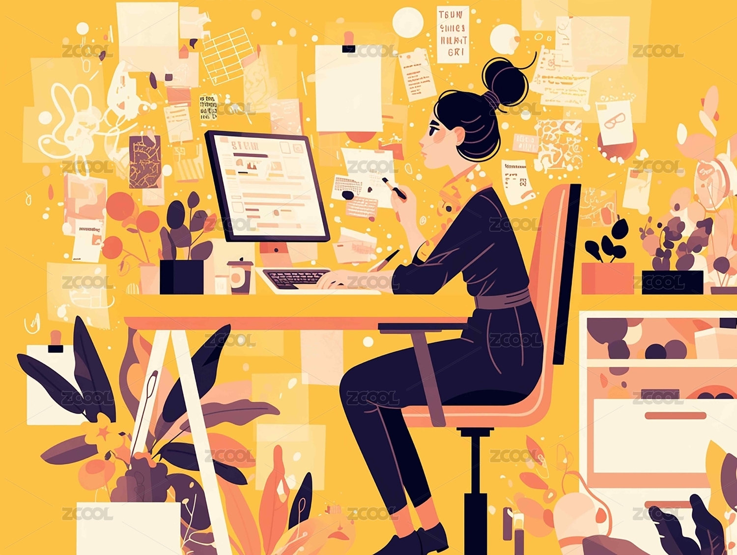 在家,办公,电脑,植物,书桌,工作,科技,聊天框,界面,家庭