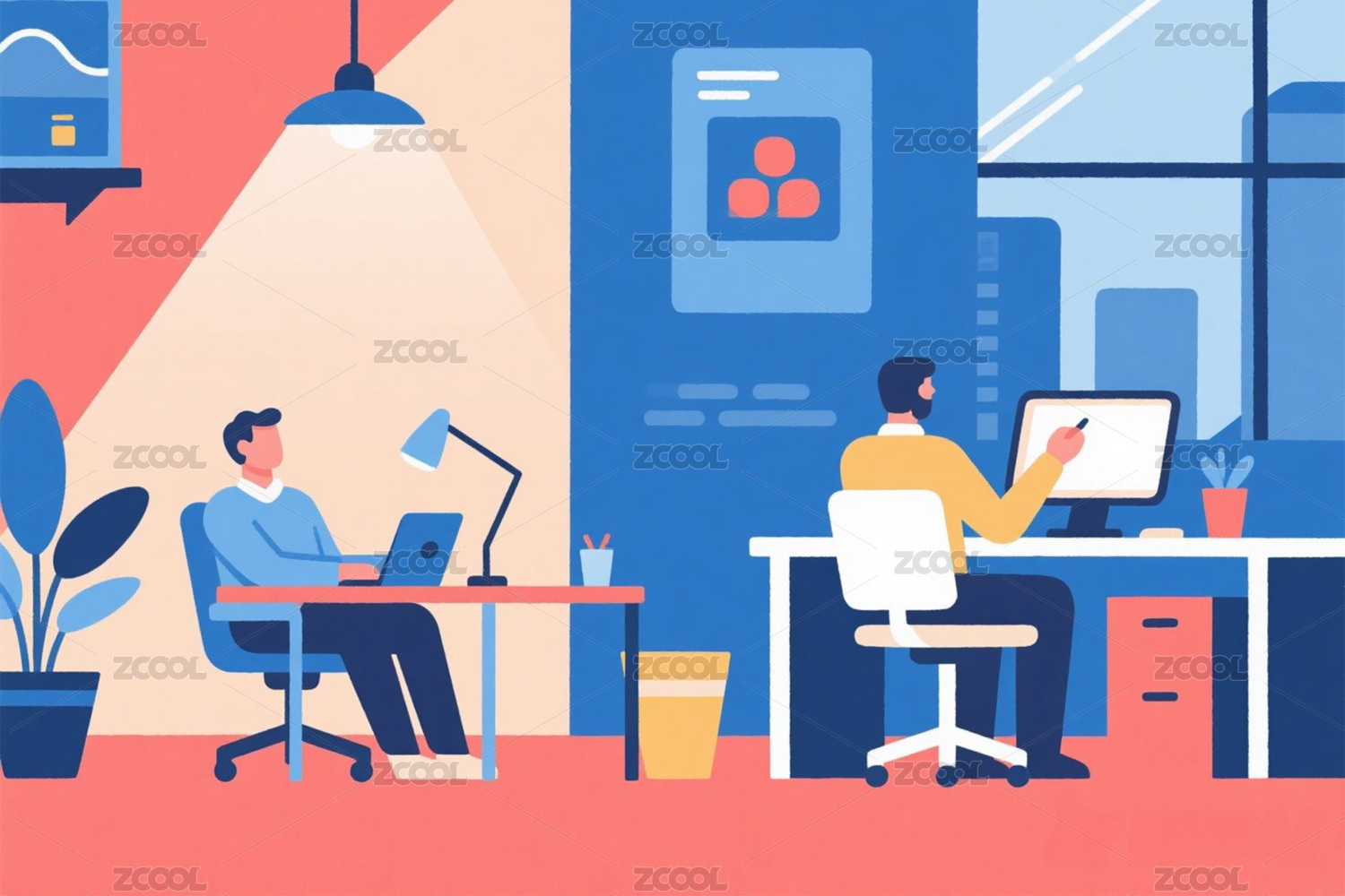 渐变炫彩植物沙发数据扁平程序员和电脑