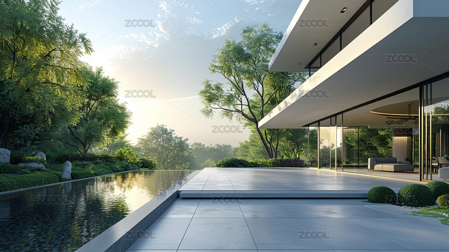 静谧水景的现代庭院