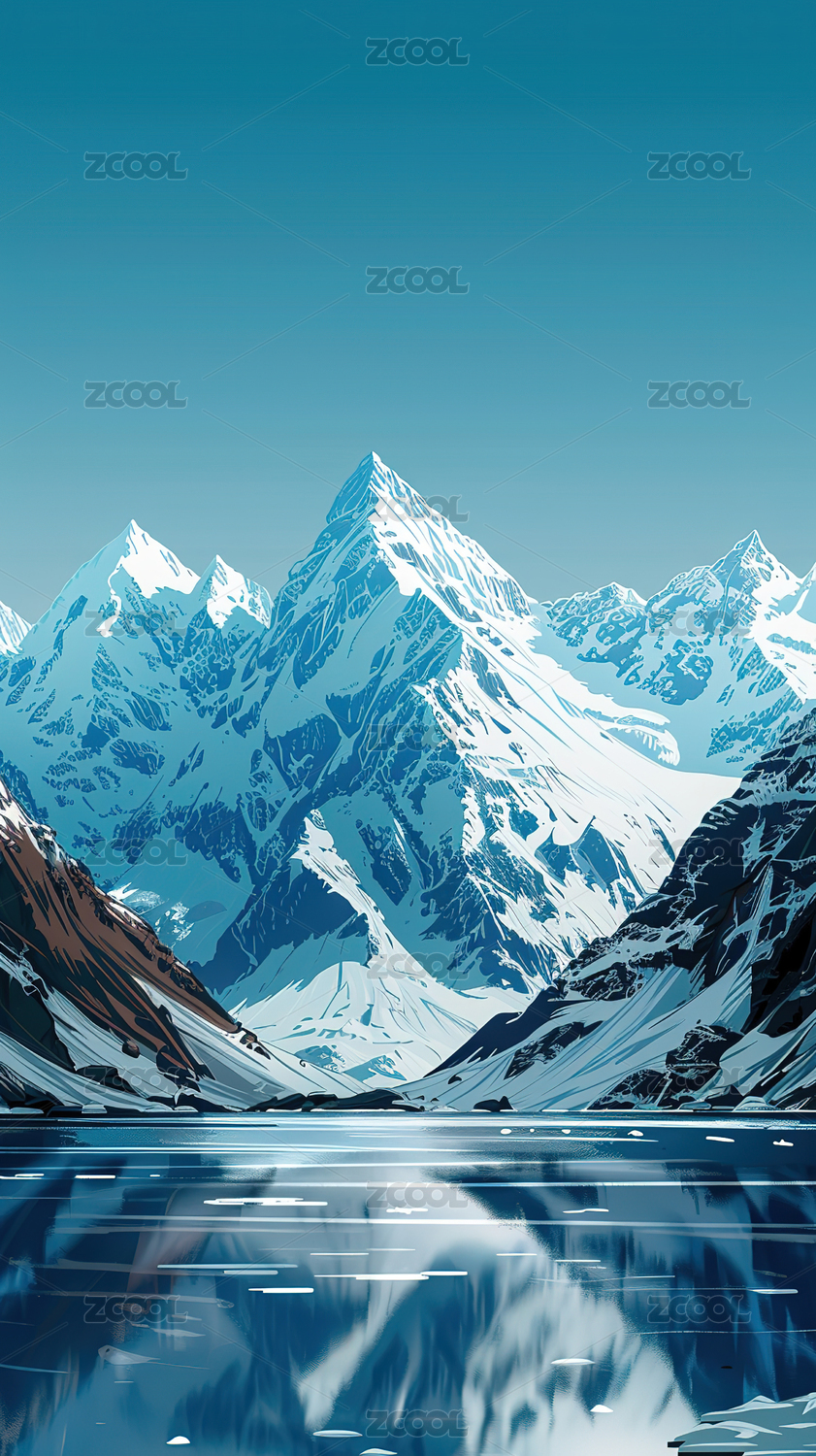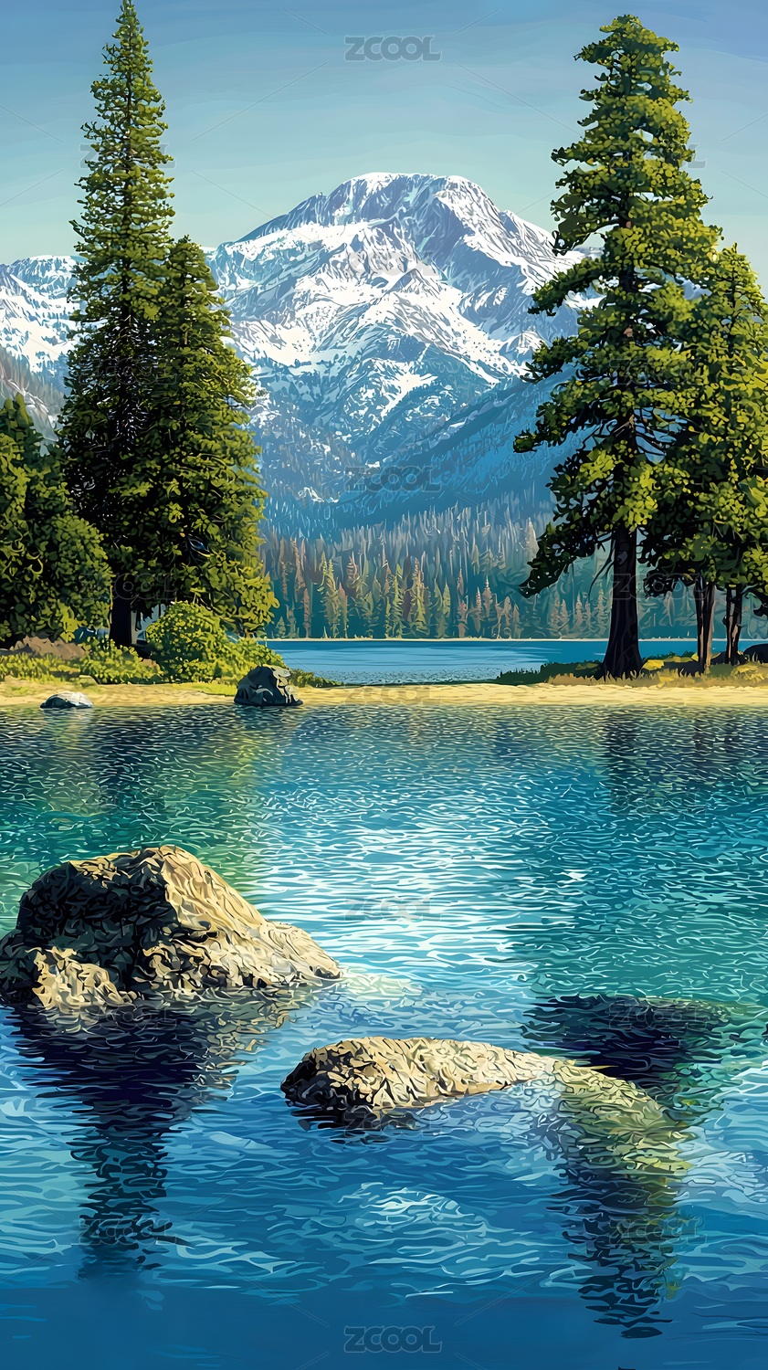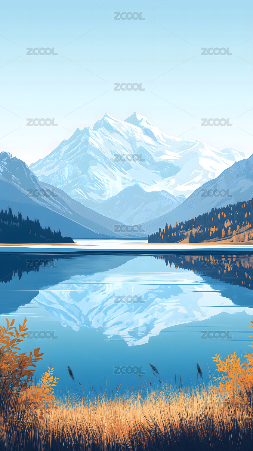 雪山湖畔的静谧时光 山水相依的自然画卷