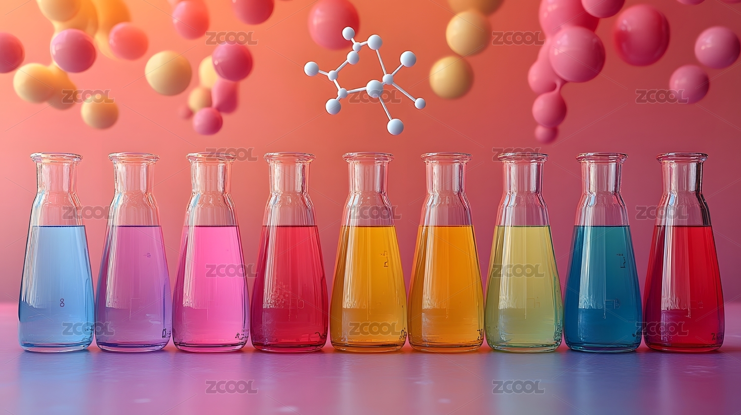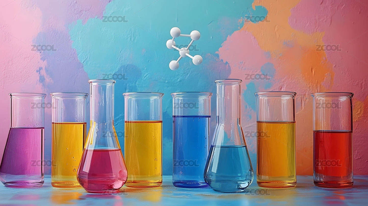 彩色烧杯和分子模型