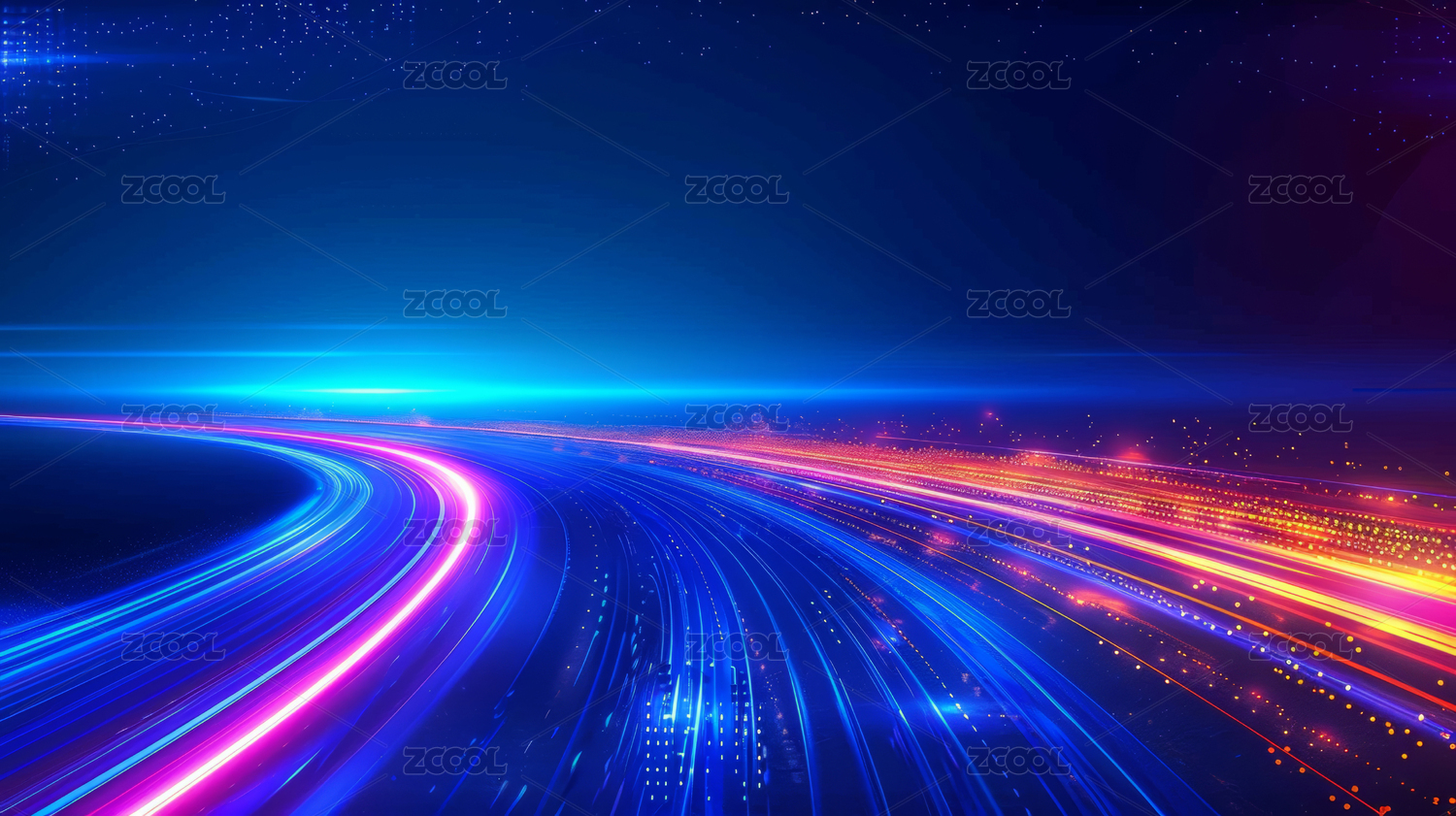 蓝色紫色光影曲线,高速公路,科技商业背景
