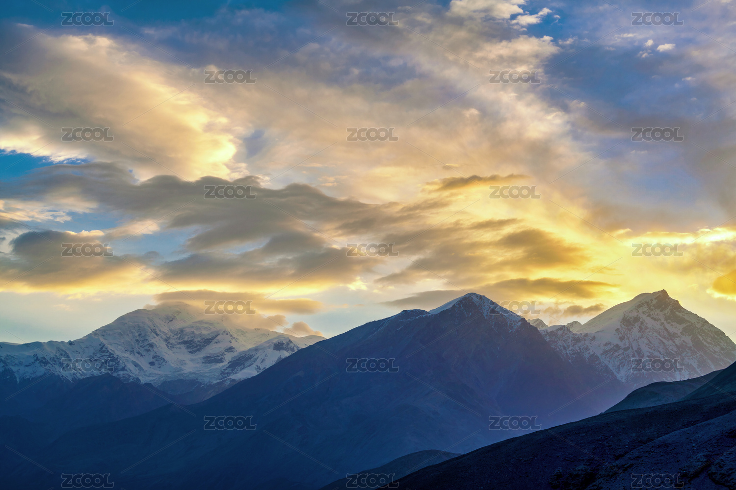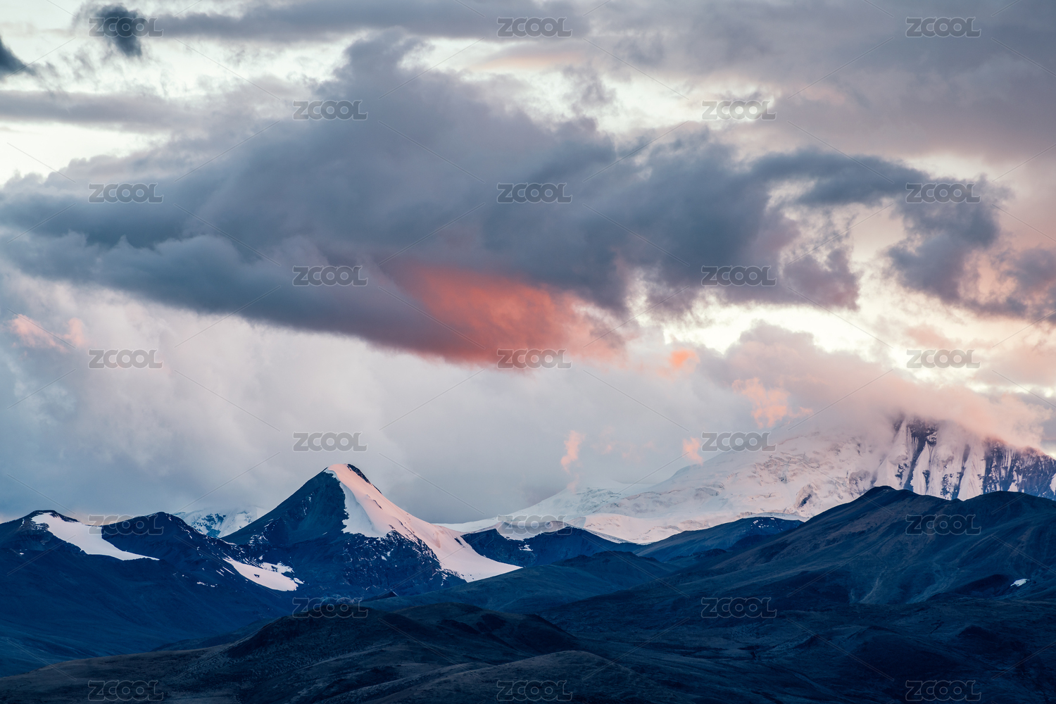 中国新疆喀什阿克陶雪山彩霞