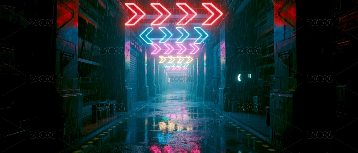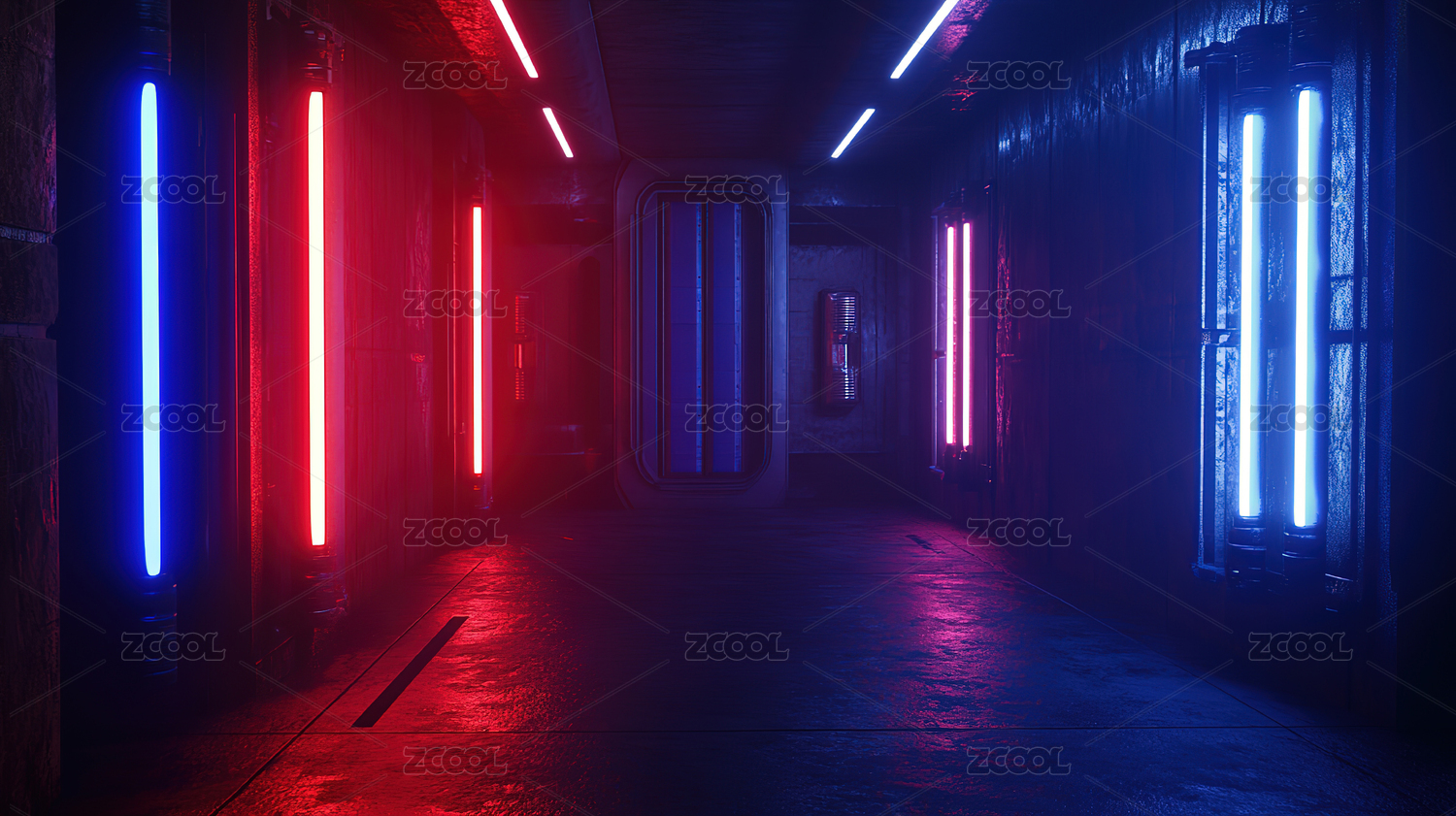 抽象霓虹灯矩阵科技感舞台赛博朋克3D插图