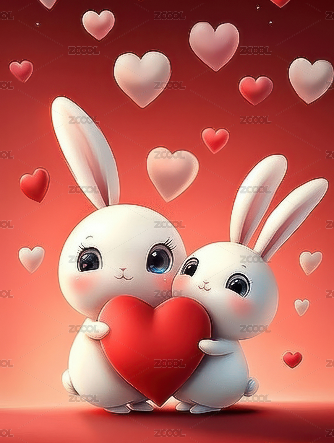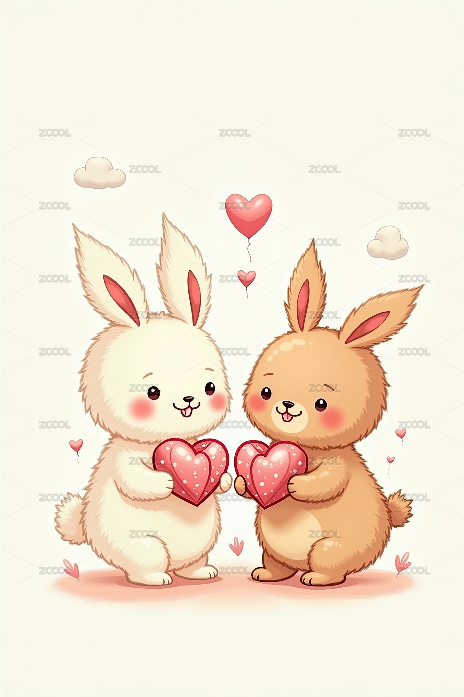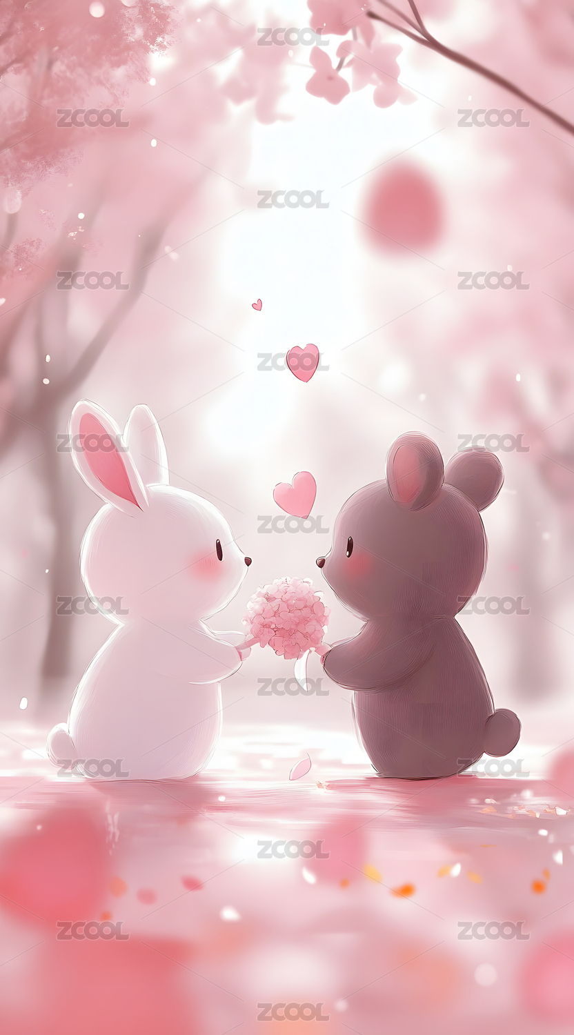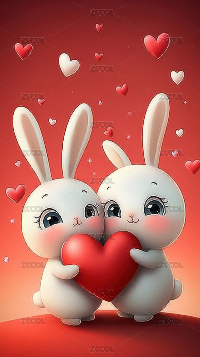 两只可爱的小兔子和爱心