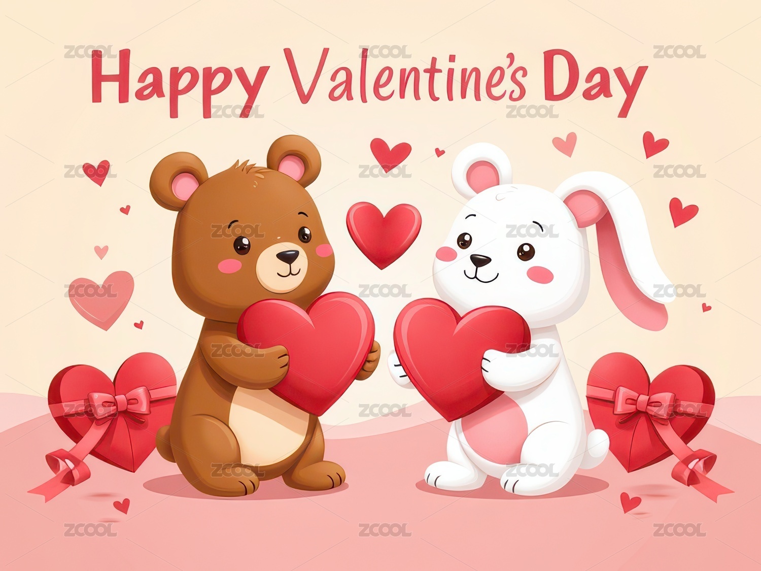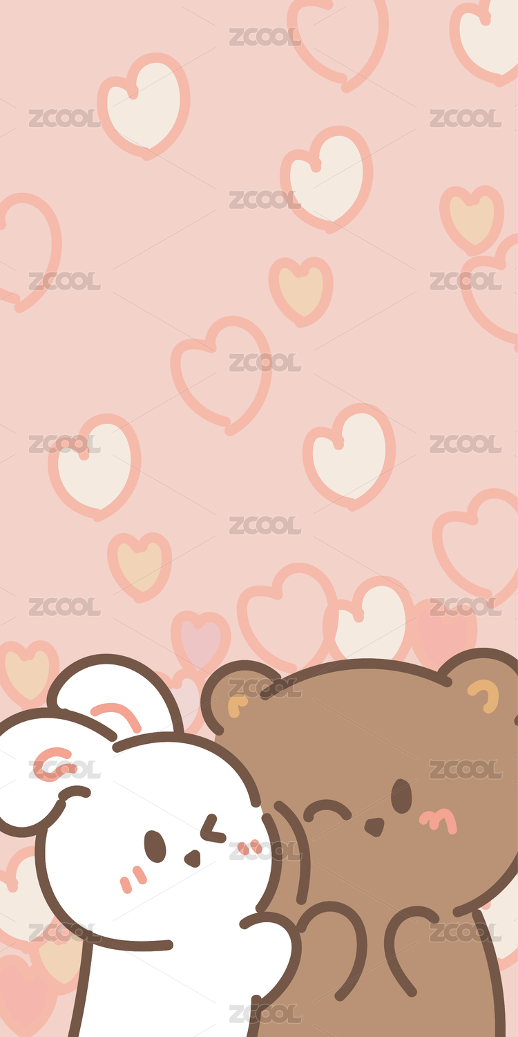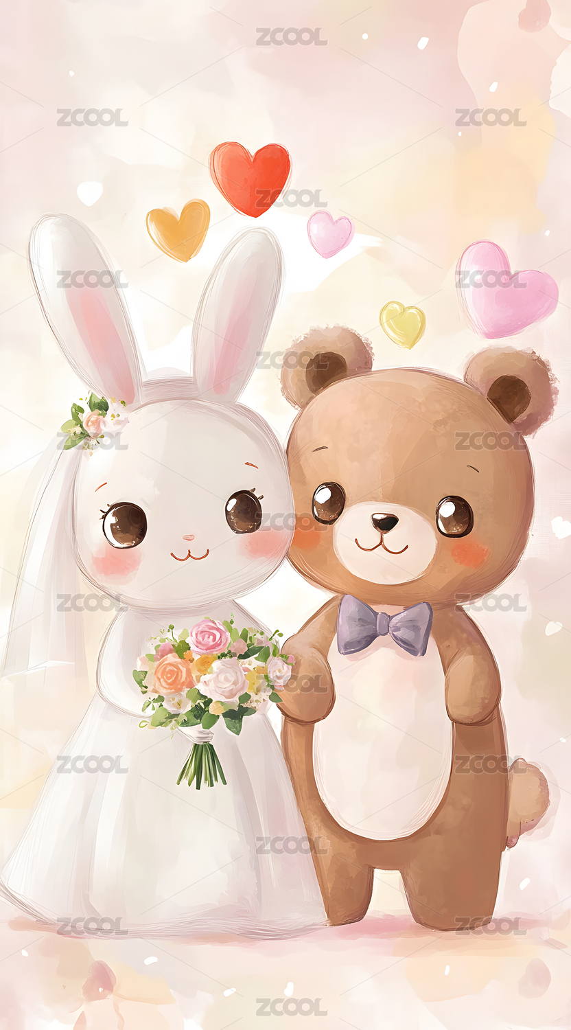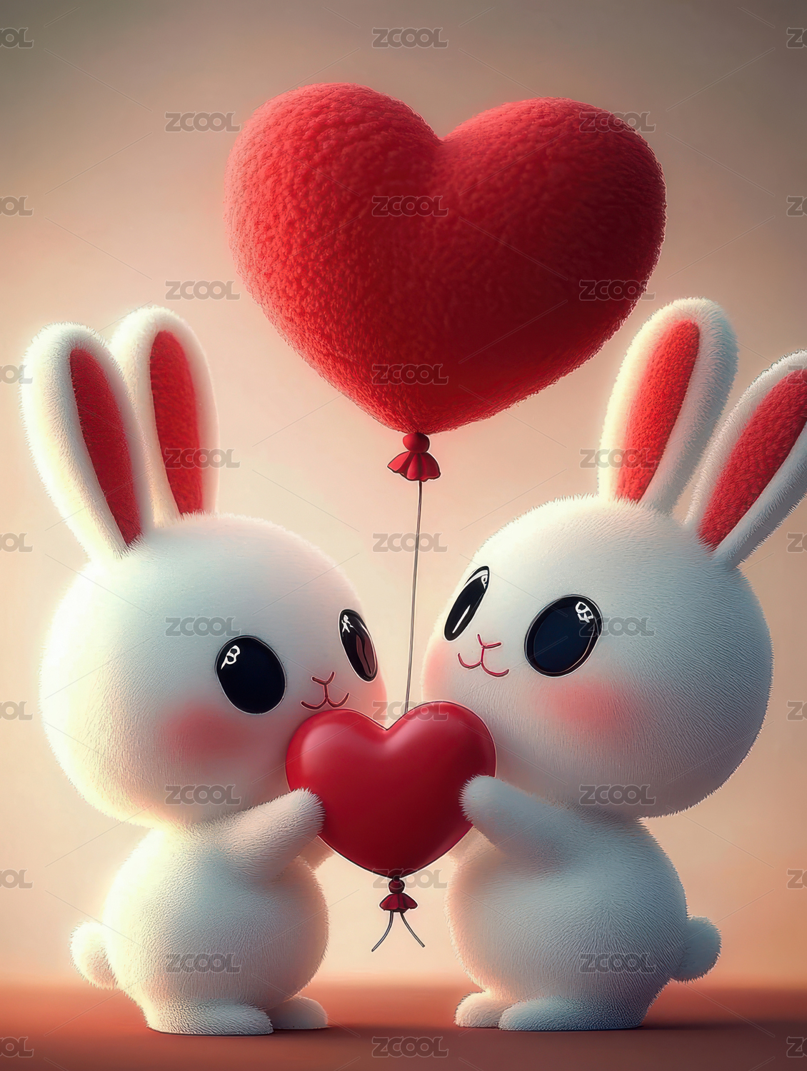 两只可爱的小兔子和爱心