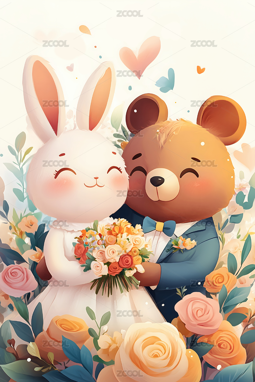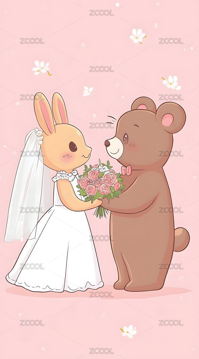 卡通动物结婚典礼插图可爱