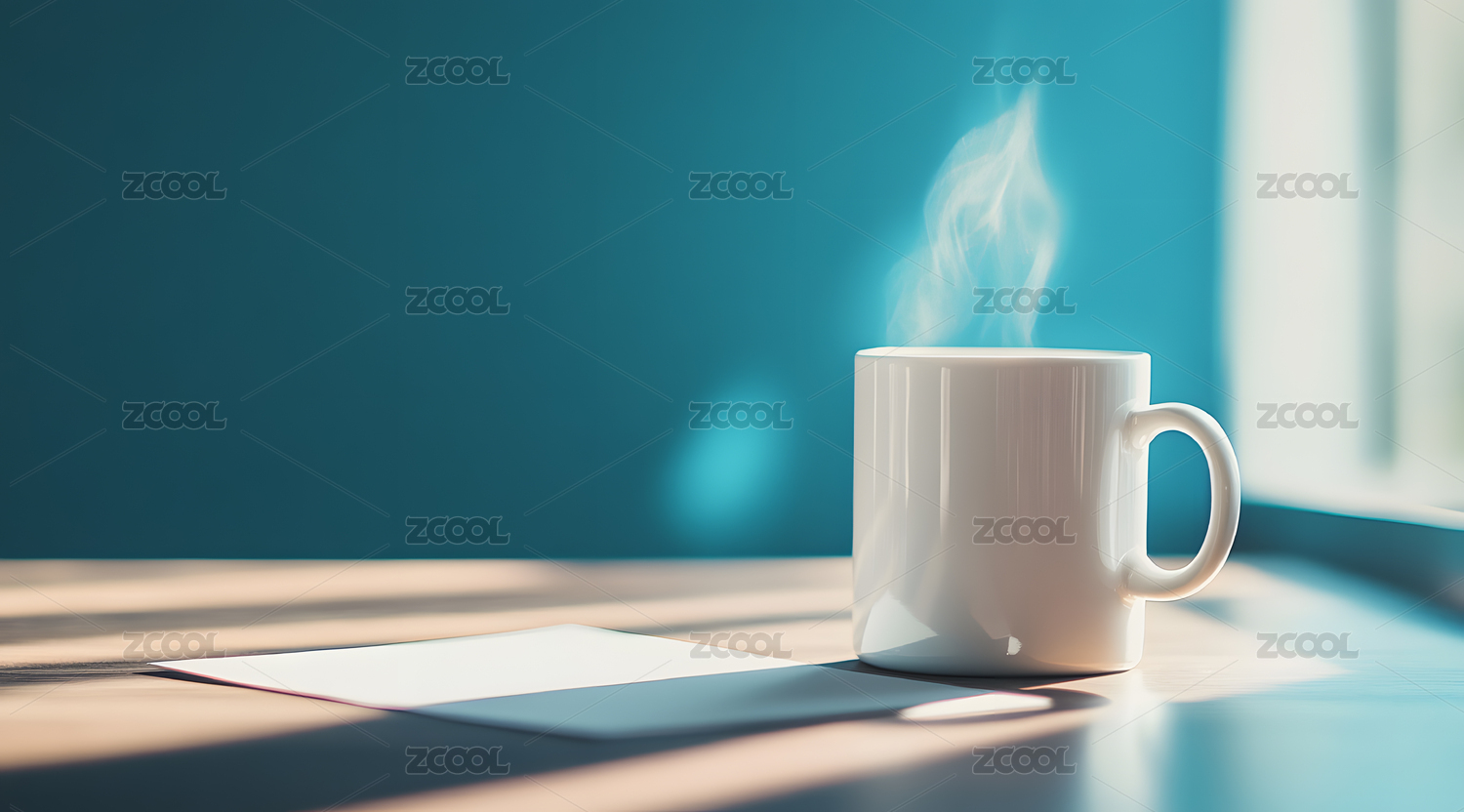 早晨,清新,简约,白色,平静,反射,蒸汽,阴影,咖啡,杯子