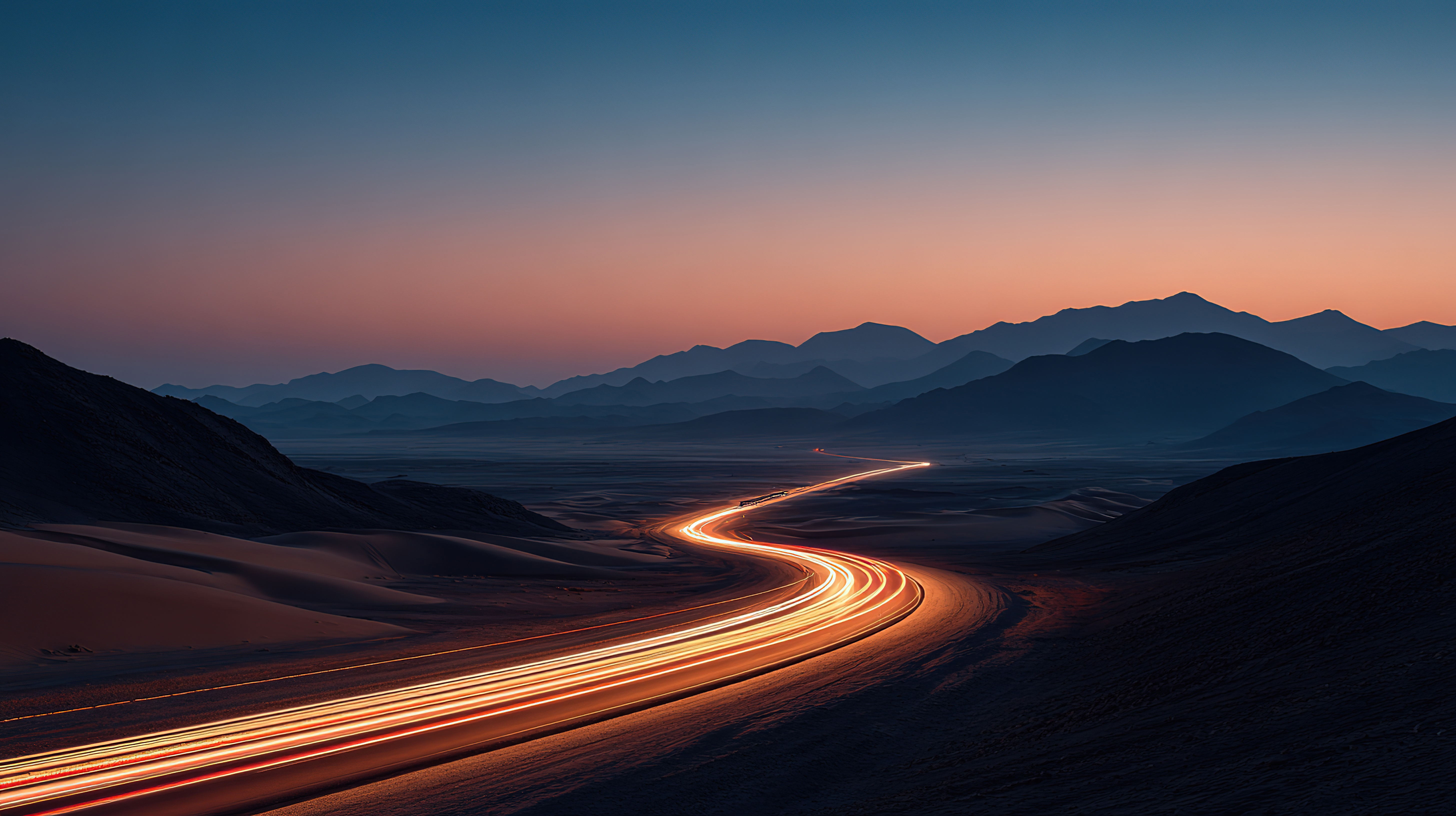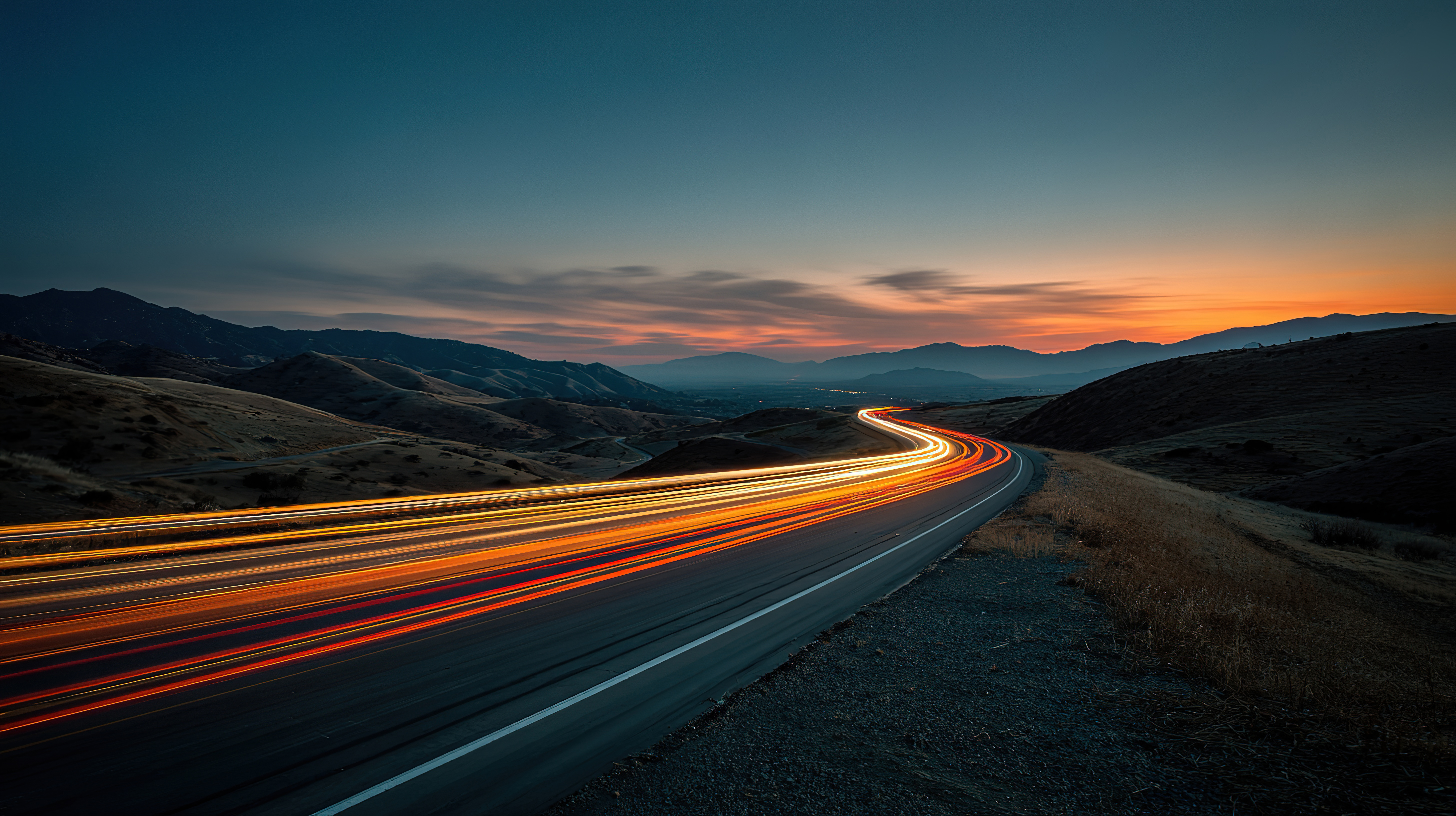 蜿蜒,公路,夜景,车灯,光轨,山脉,黑暗,曲线,道路,流动