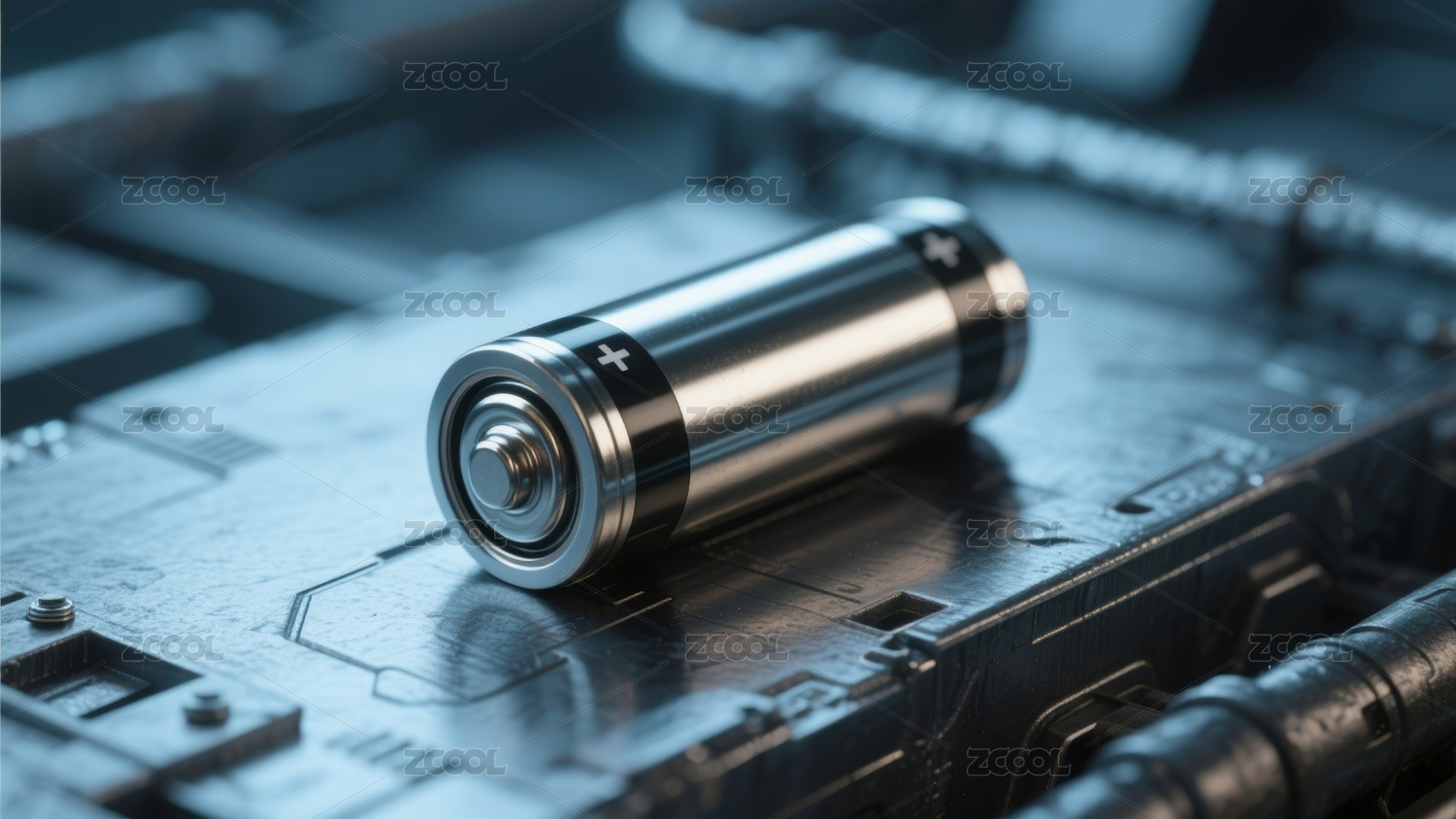 电池,圆柱形,金属质感,光泽,科技,背景,光斑,蓝色,未来感,工业设计