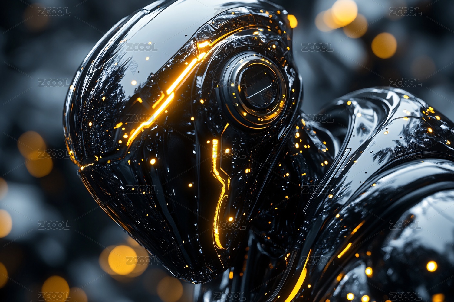未来感黑色机械头盔特写