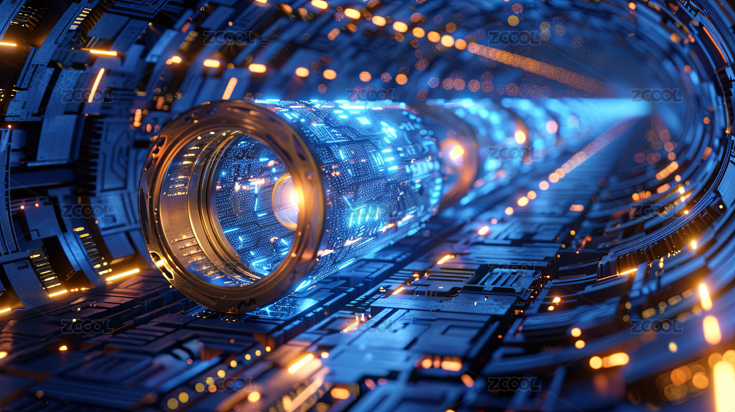 现代,蓝色,橙色,未来,数字,科技,科幻,数据,光效,发光管