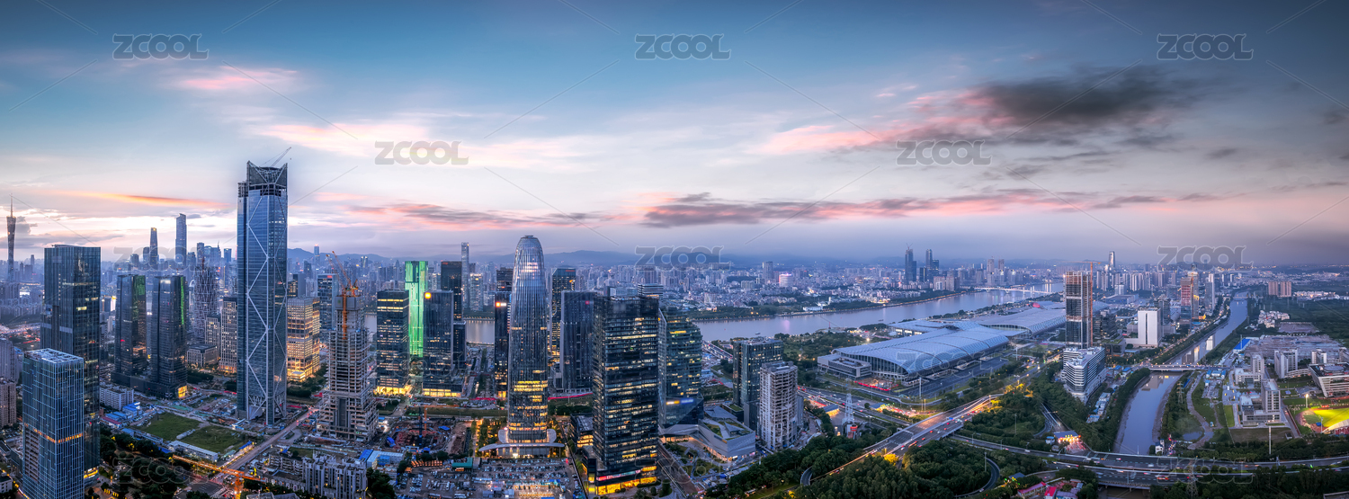航拍现代化大都市中国上海的城市风光夜景天际线