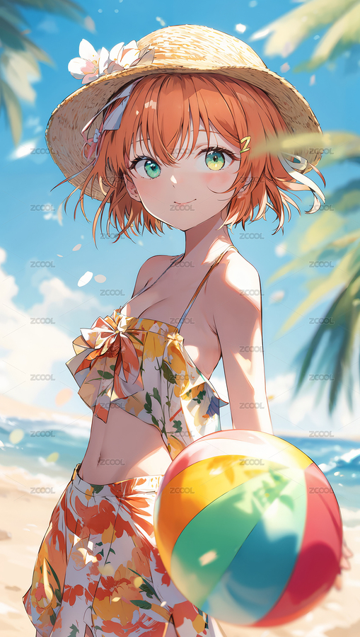 夏日海滩的动漫女孩
