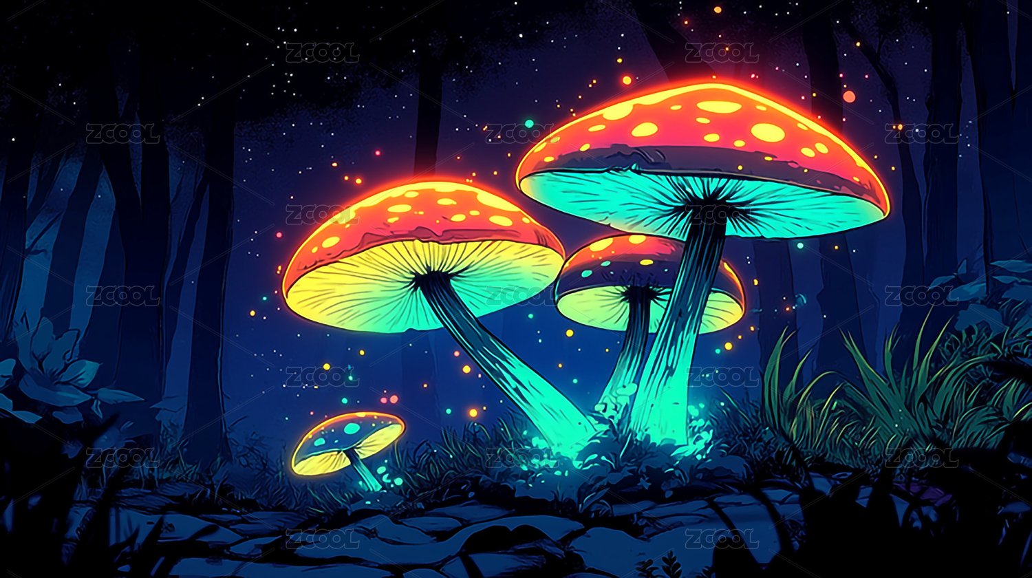 蘑菇,真菌,发光,魔法,浪漫,深夜,背景,装饰,菌盖,植物