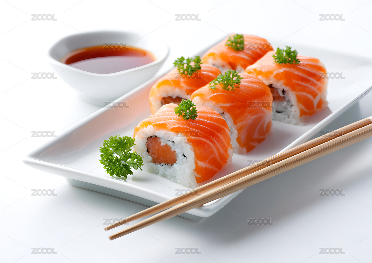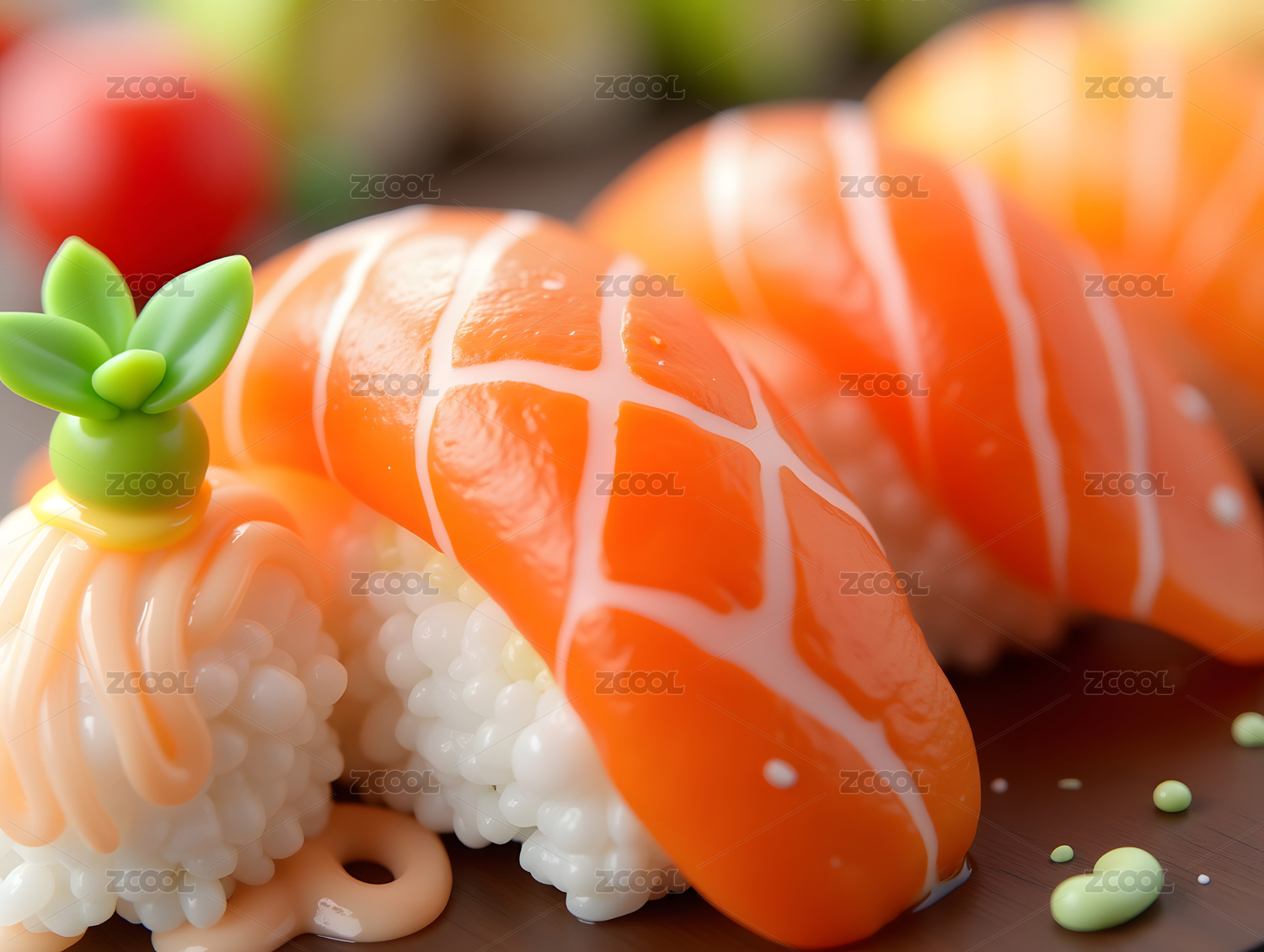 美味三文鱼寿司特写