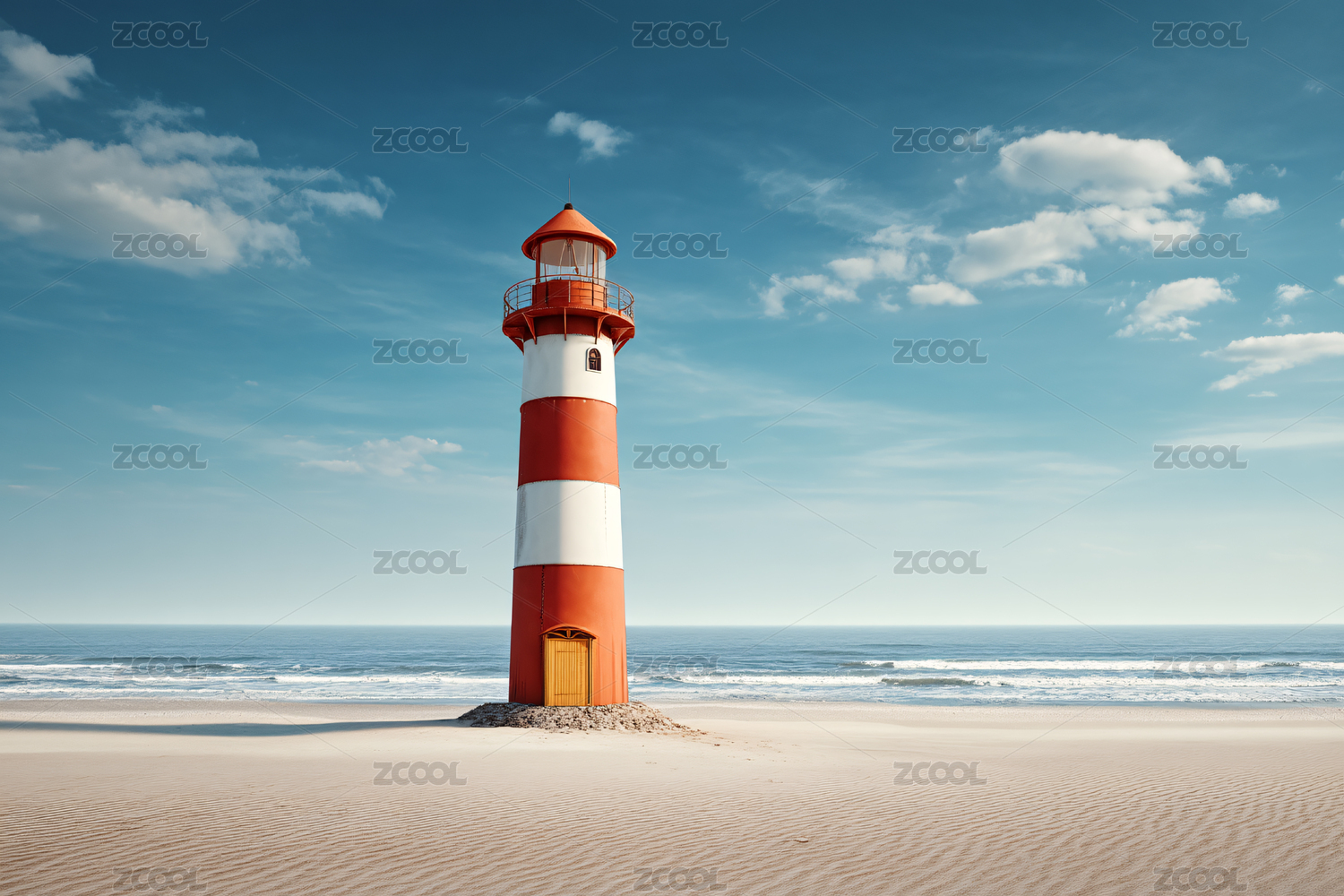 红白灯塔与沙滩风景