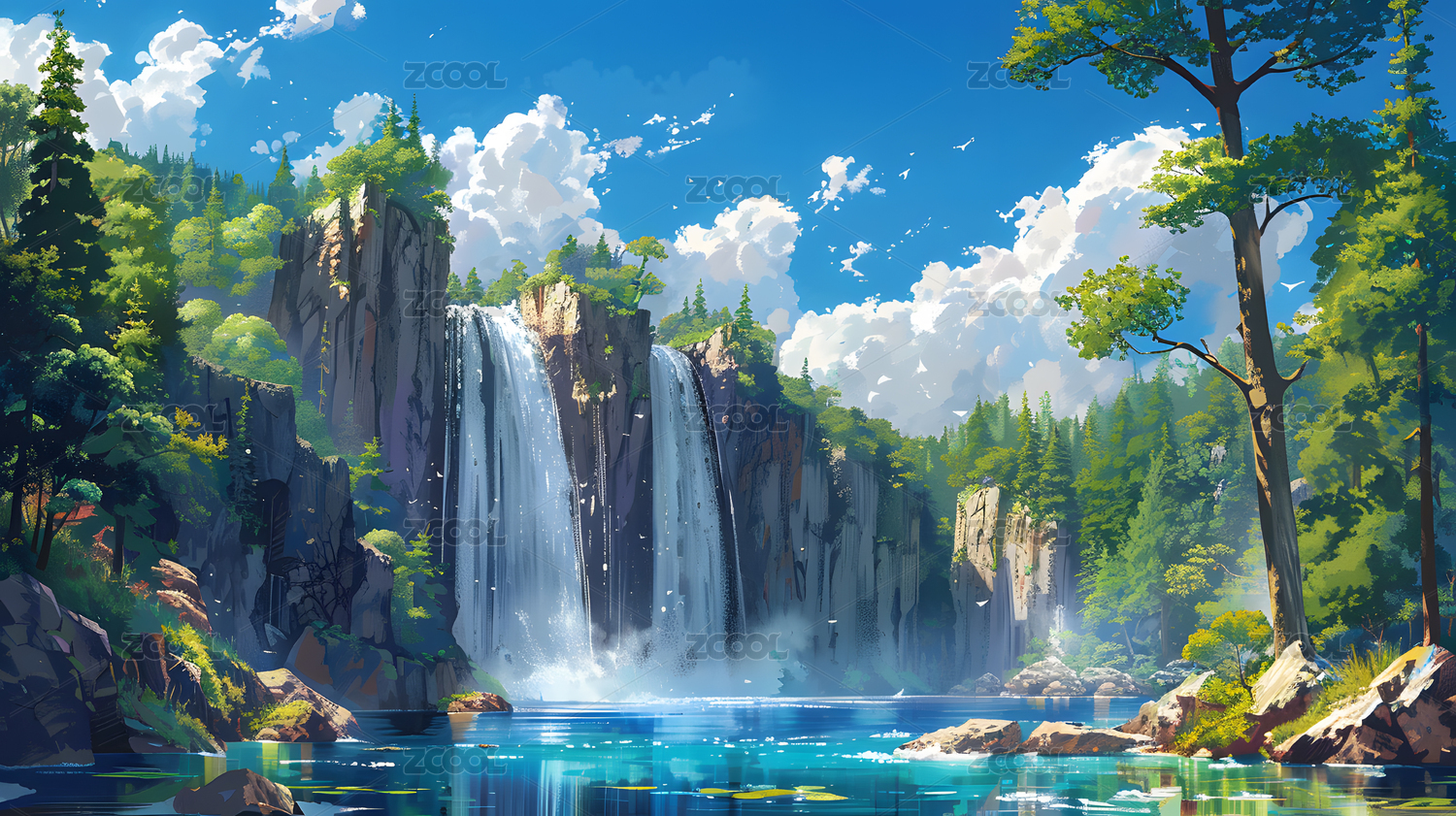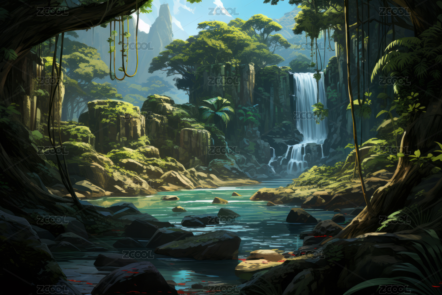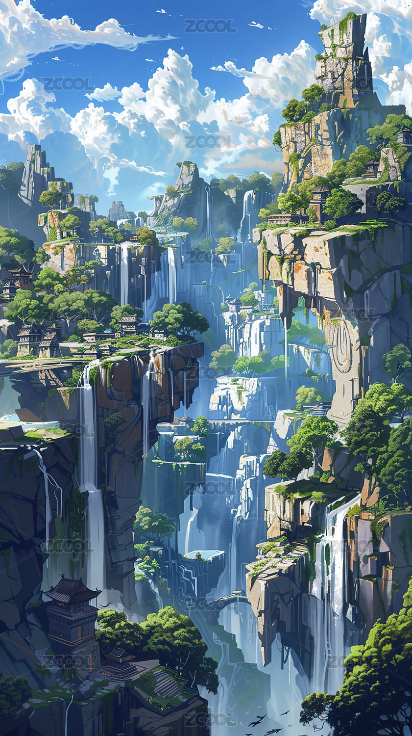 漂浮,岛屿,低多,边形,卡通,景观,自然,绿色,水景,清新