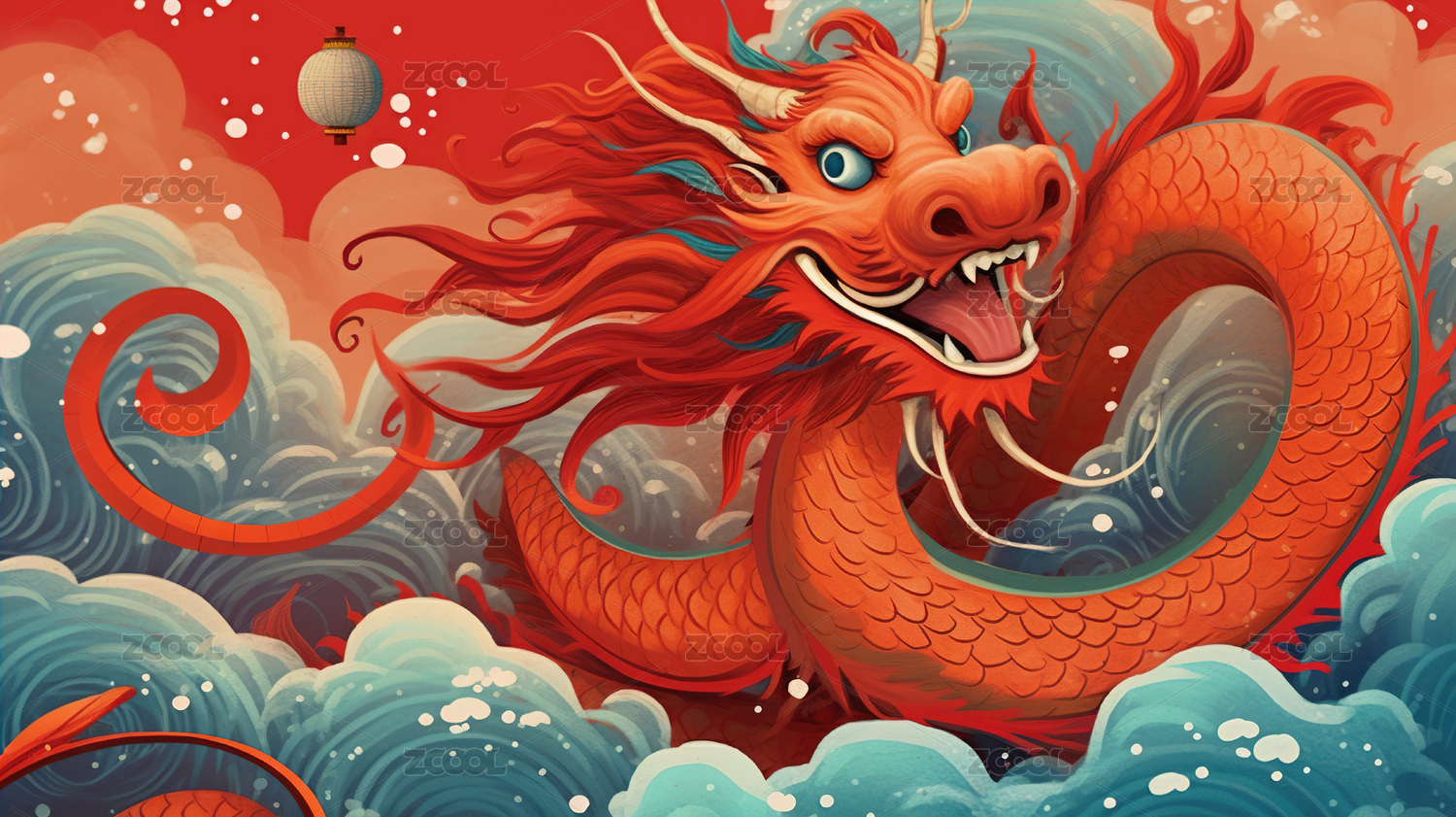 节日,庆祝,卡通,插画,天空,生肖,吉祥,喜庆,新年,春节