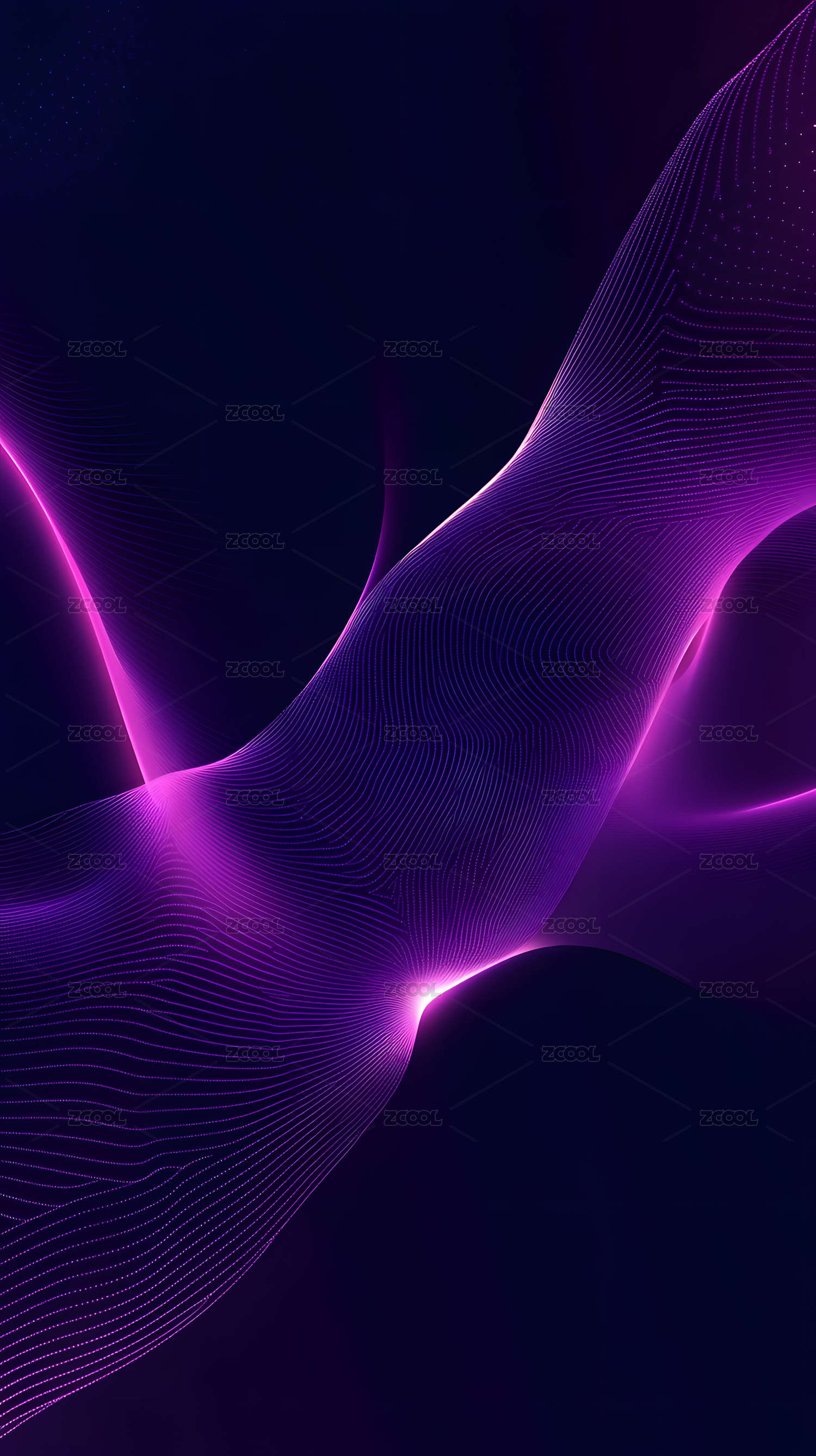 蓝紫色渐变波浪线条,动感光影曲线背景