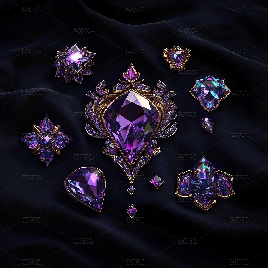 宝石,紫晶,镶饰,金属,造型,光影,闪烁,黑色,背景,华丽