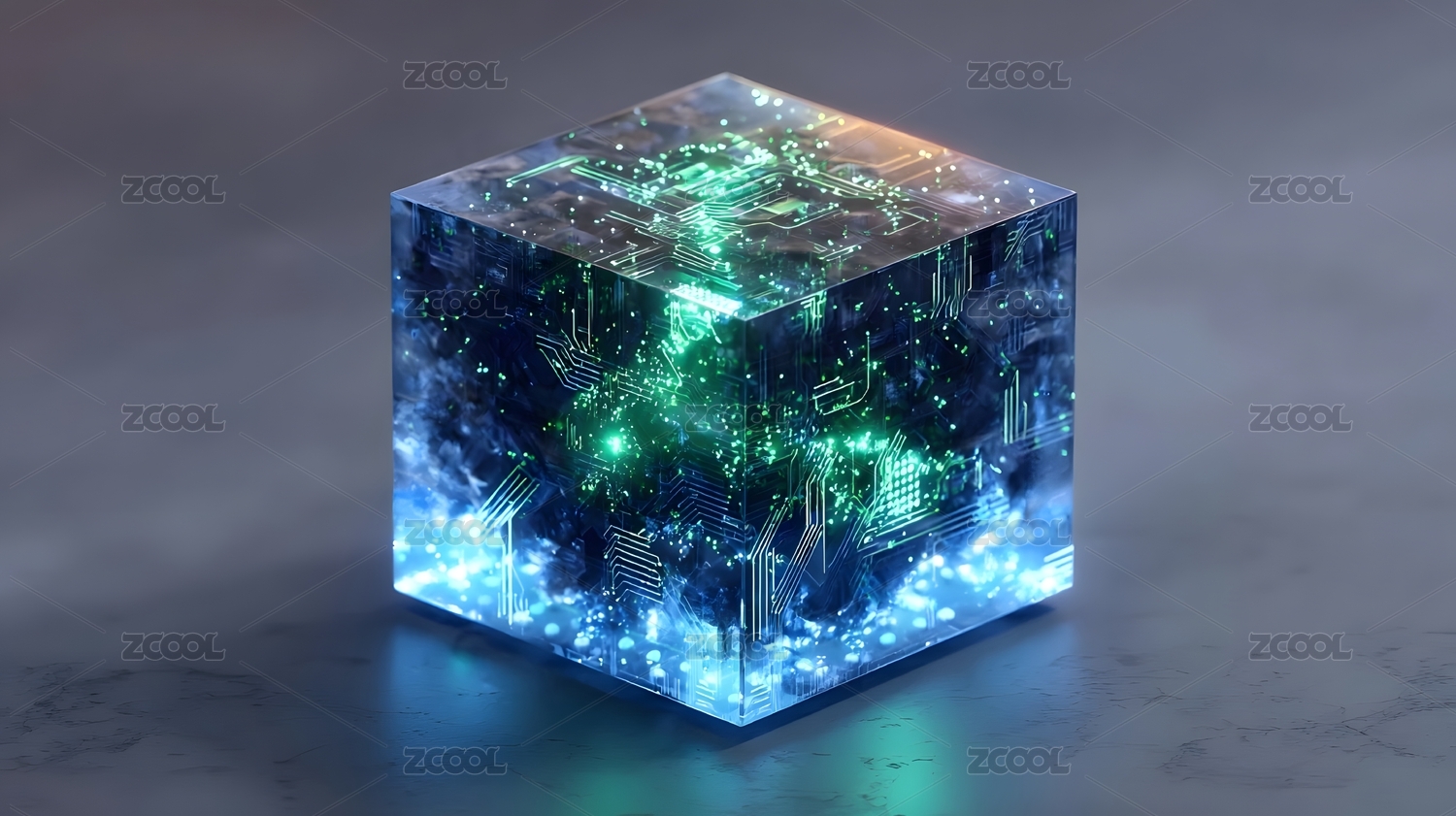 绿晶体,立方体,透明,光泽,反光,纹理,裂痕,表面,光影,特效