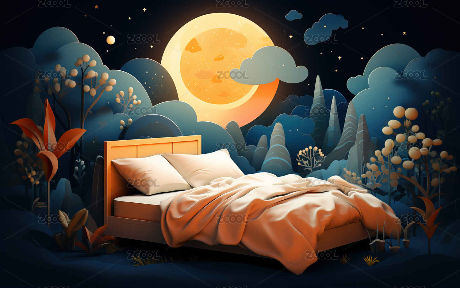 世界睡眠日卧室床睡眠休息放松舒适卡通背景