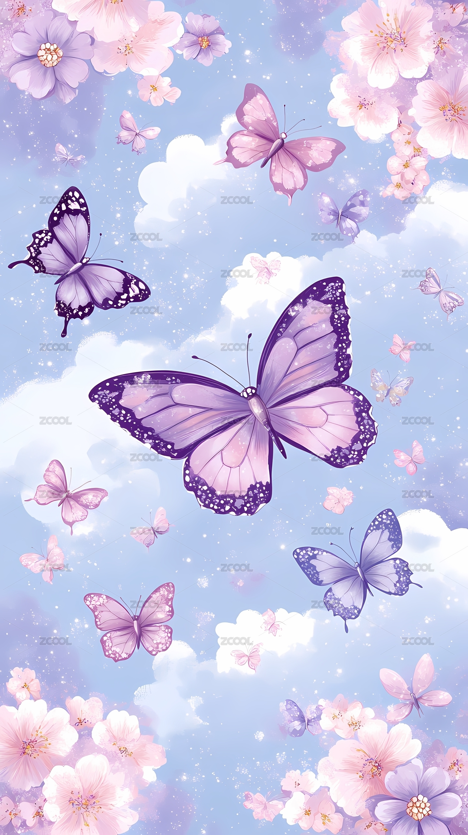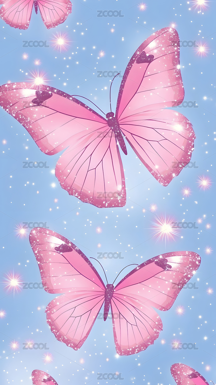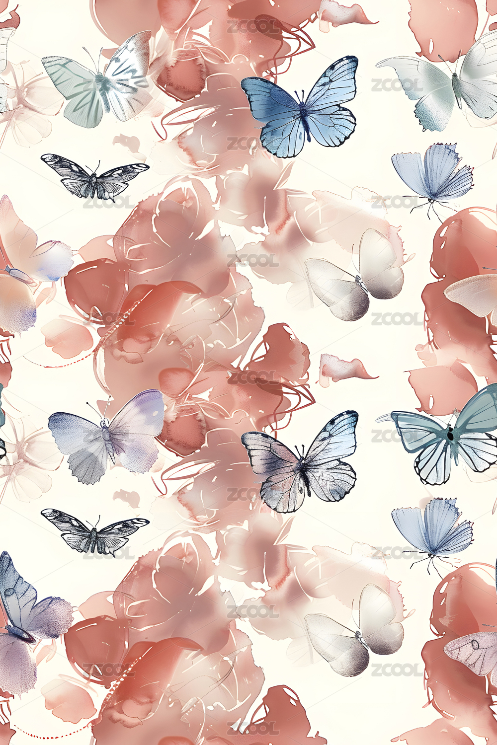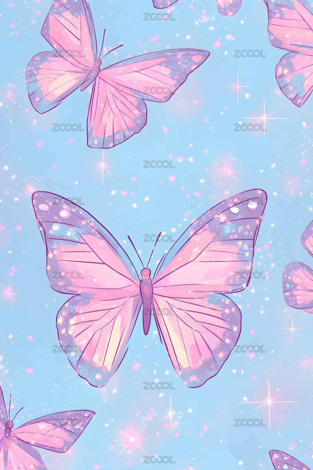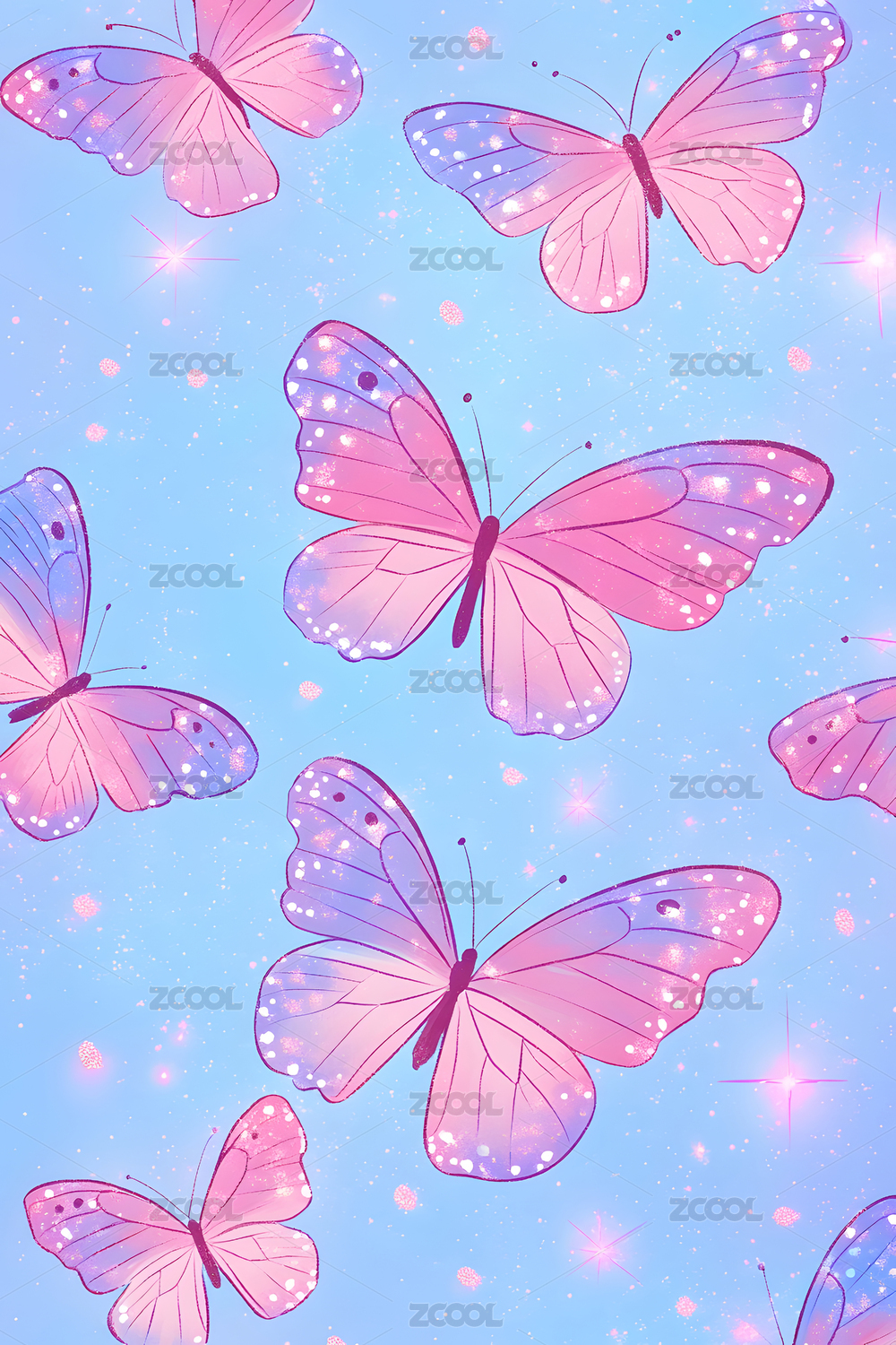 唯美梦幻展翅飞翔的蝴蝶图案印花插画