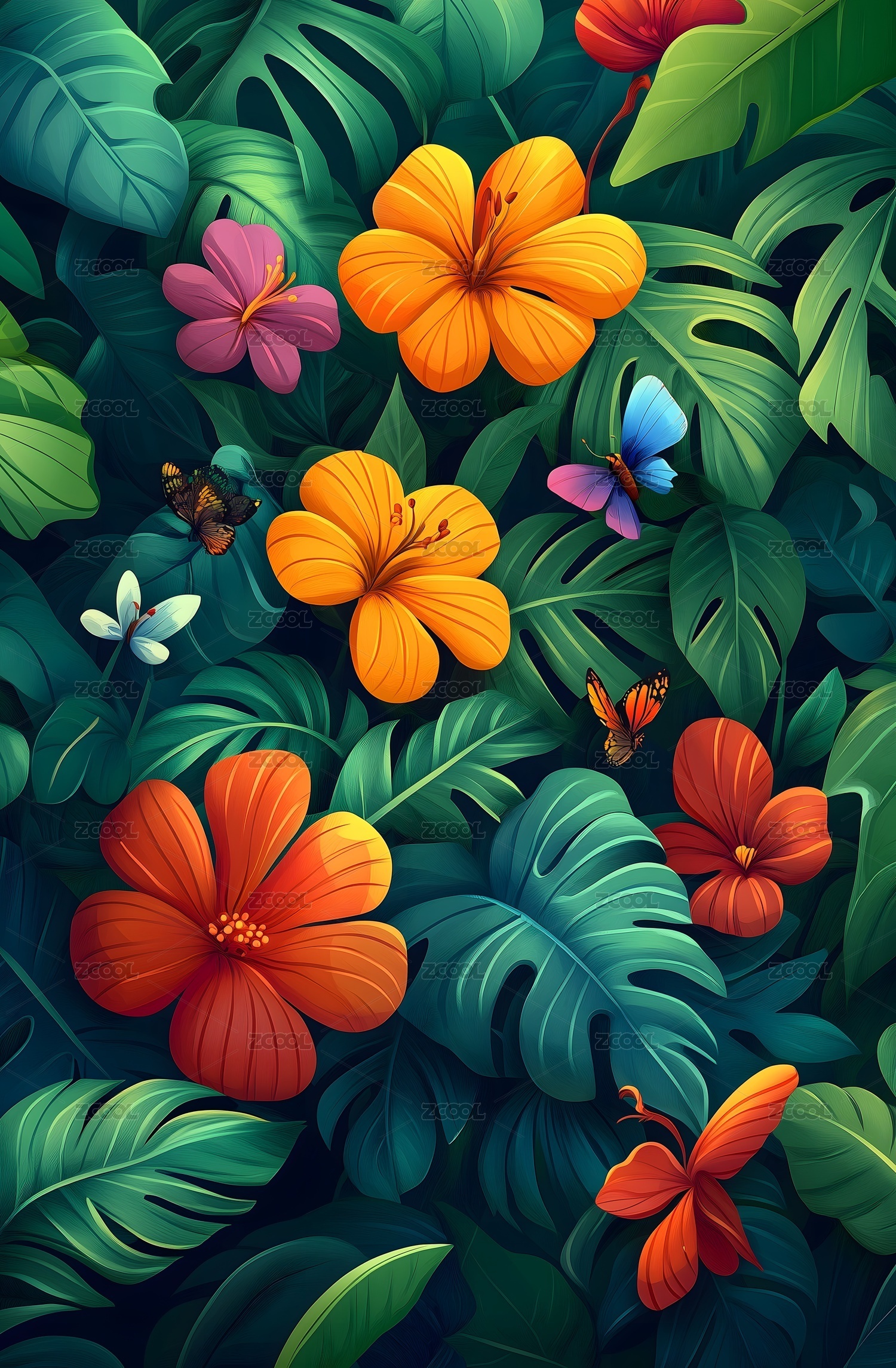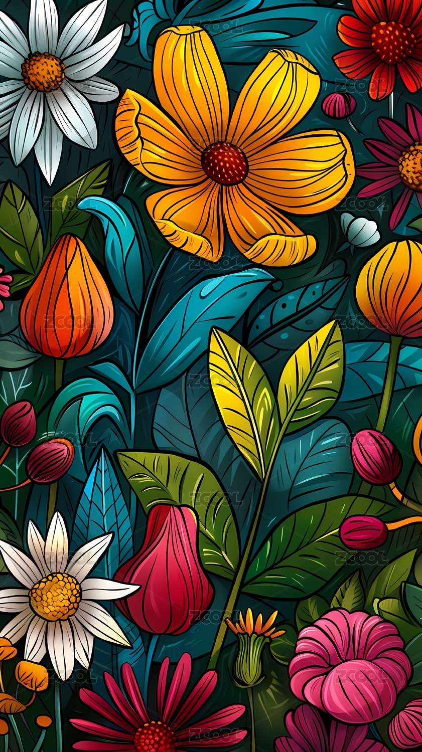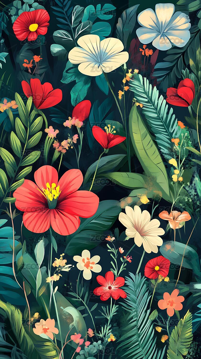 水彩,花,叶,花园,纹理,图案,复古,海报,背景,设计