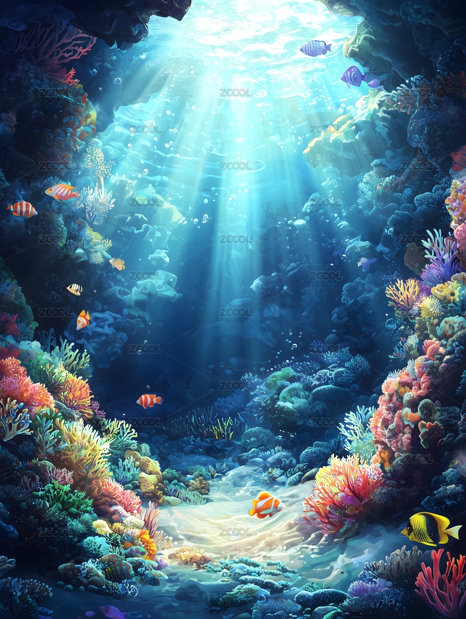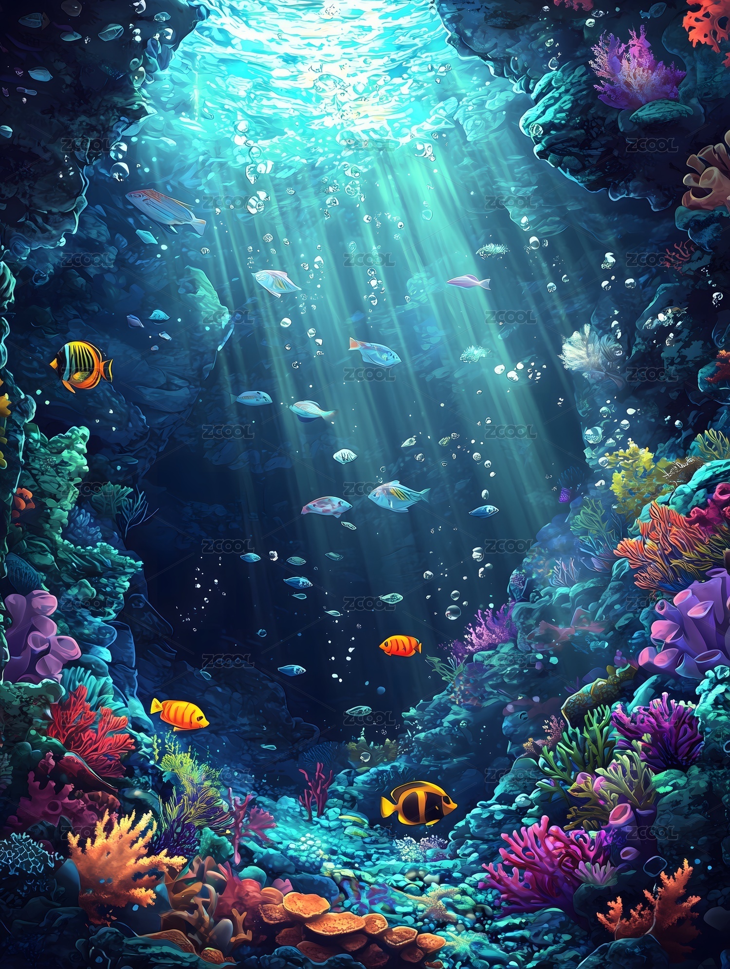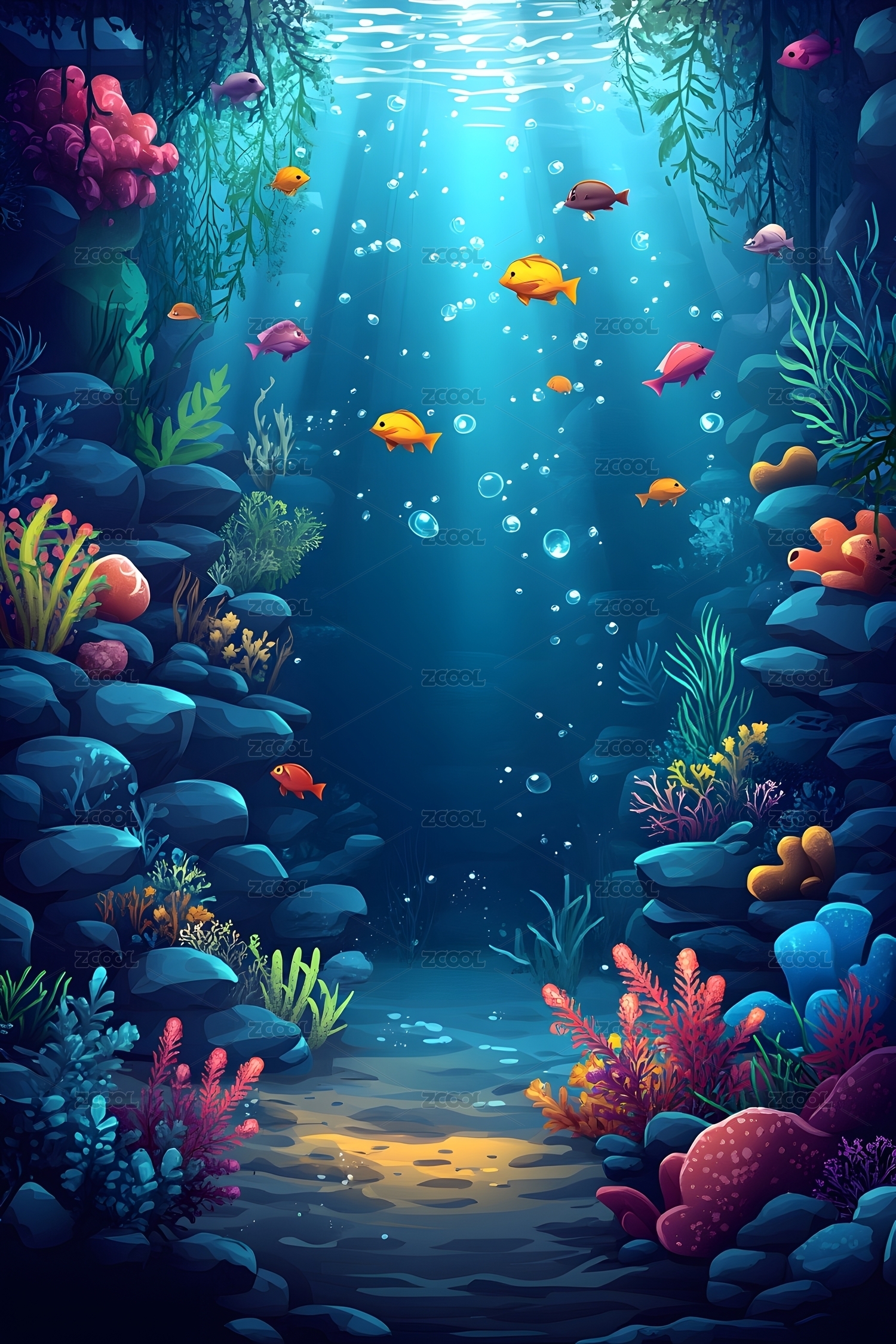 3d,剪纸,水下,海洋,卡通,漩涡,纸张,艺术,抽象,海报