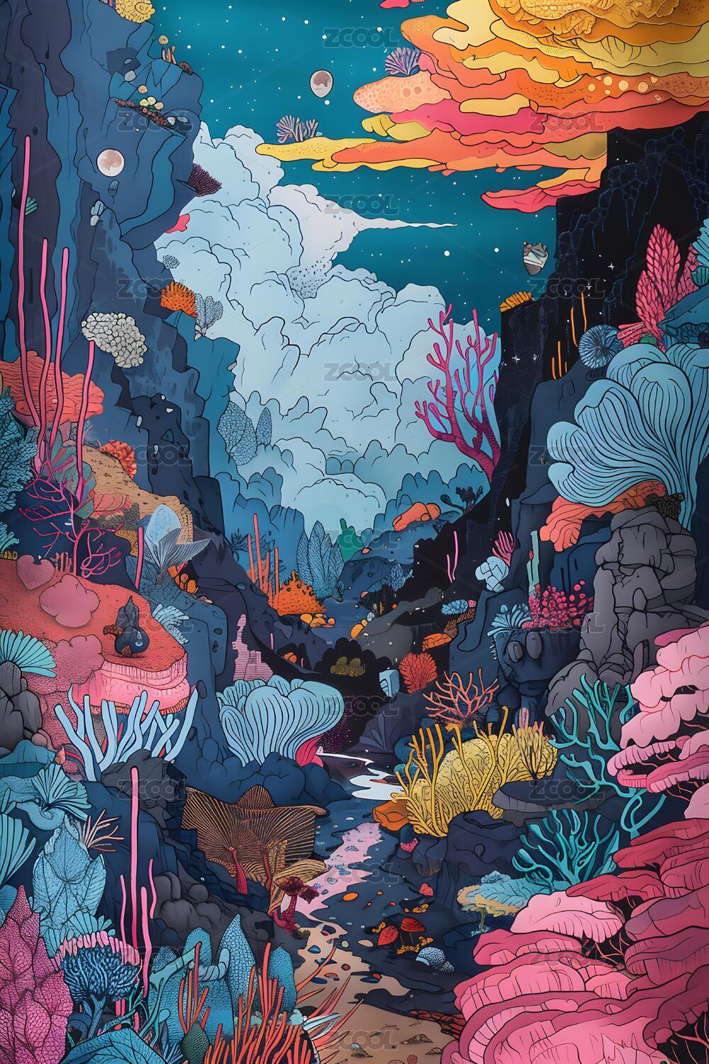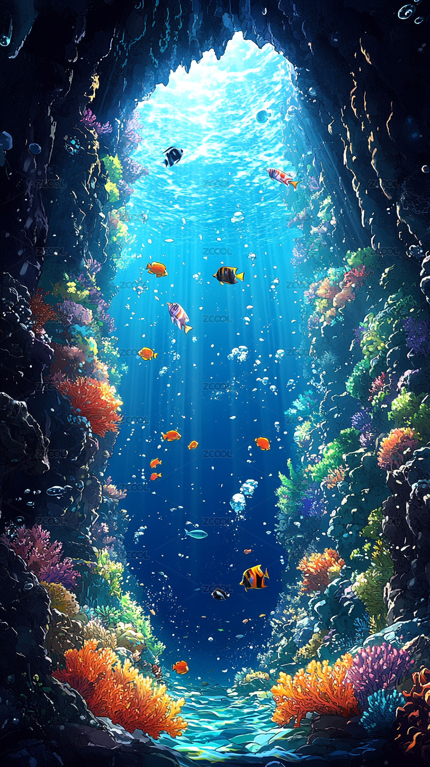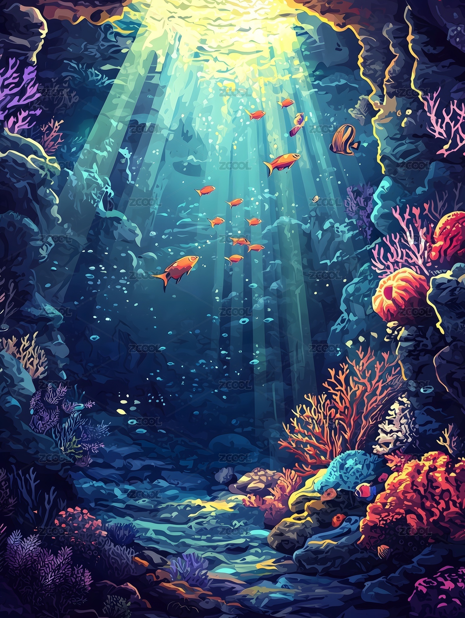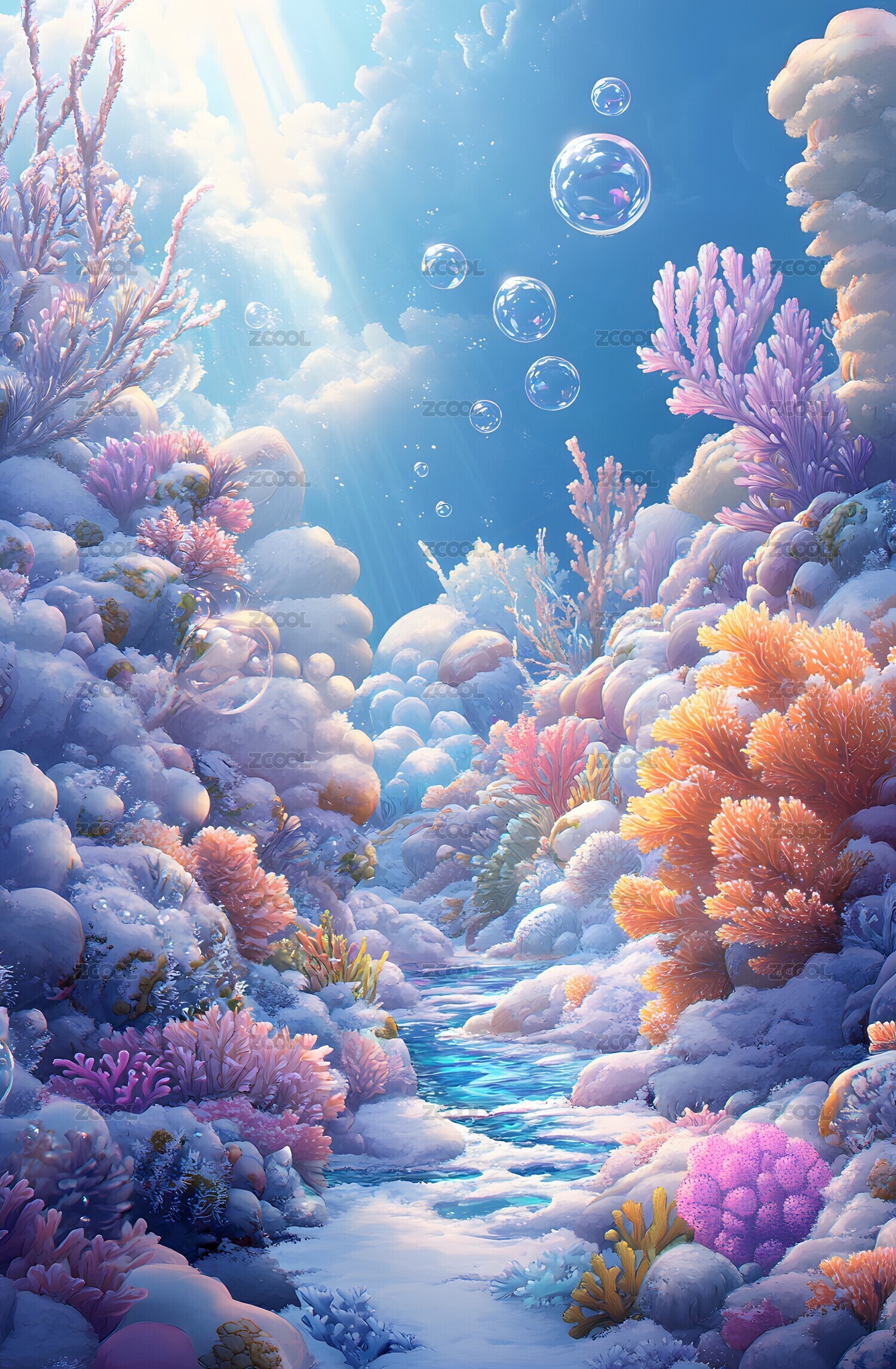 3d,剪纸,水下,海洋,卡通,漩涡,纸张,艺术,抽象,海报