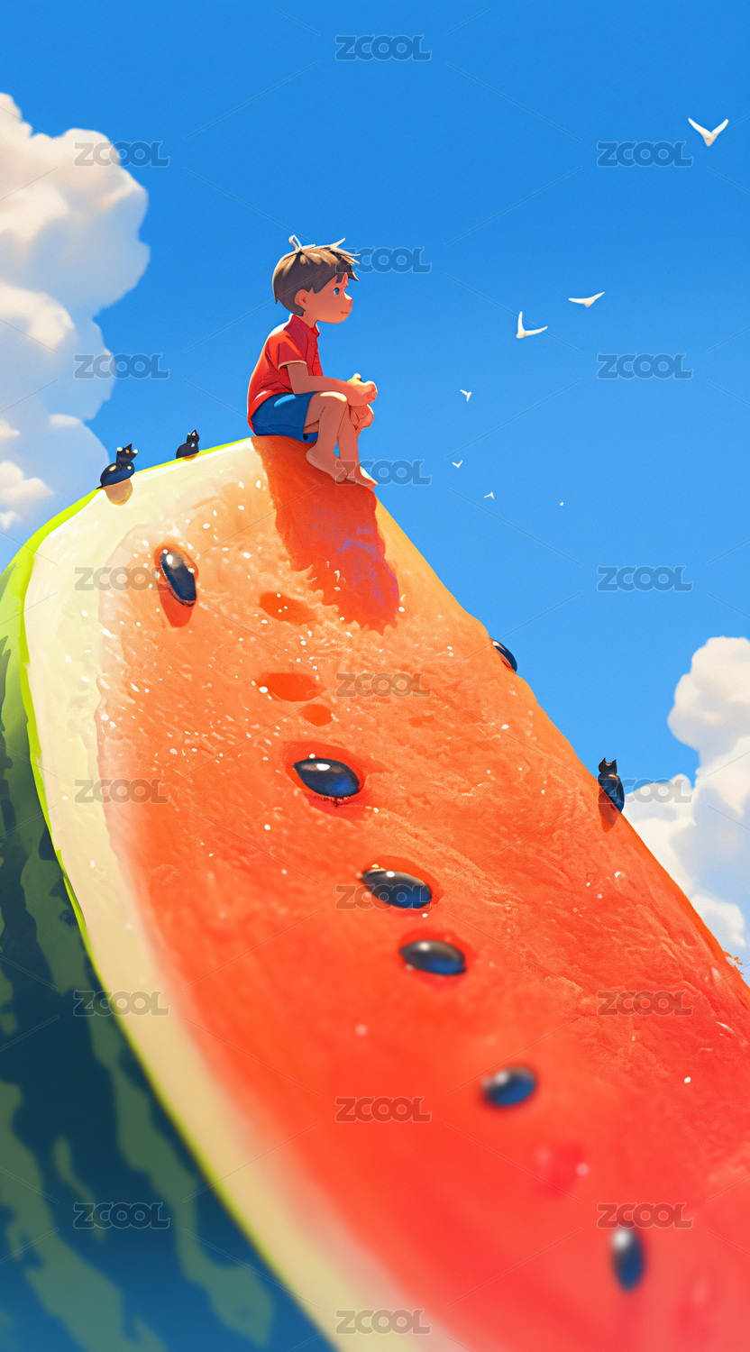 夏季女孩坐在西瓜上