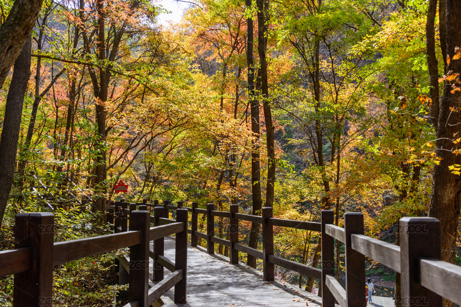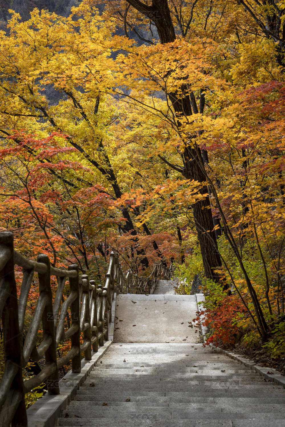 重庆巫山神女景区里红叶掩映的山间小路