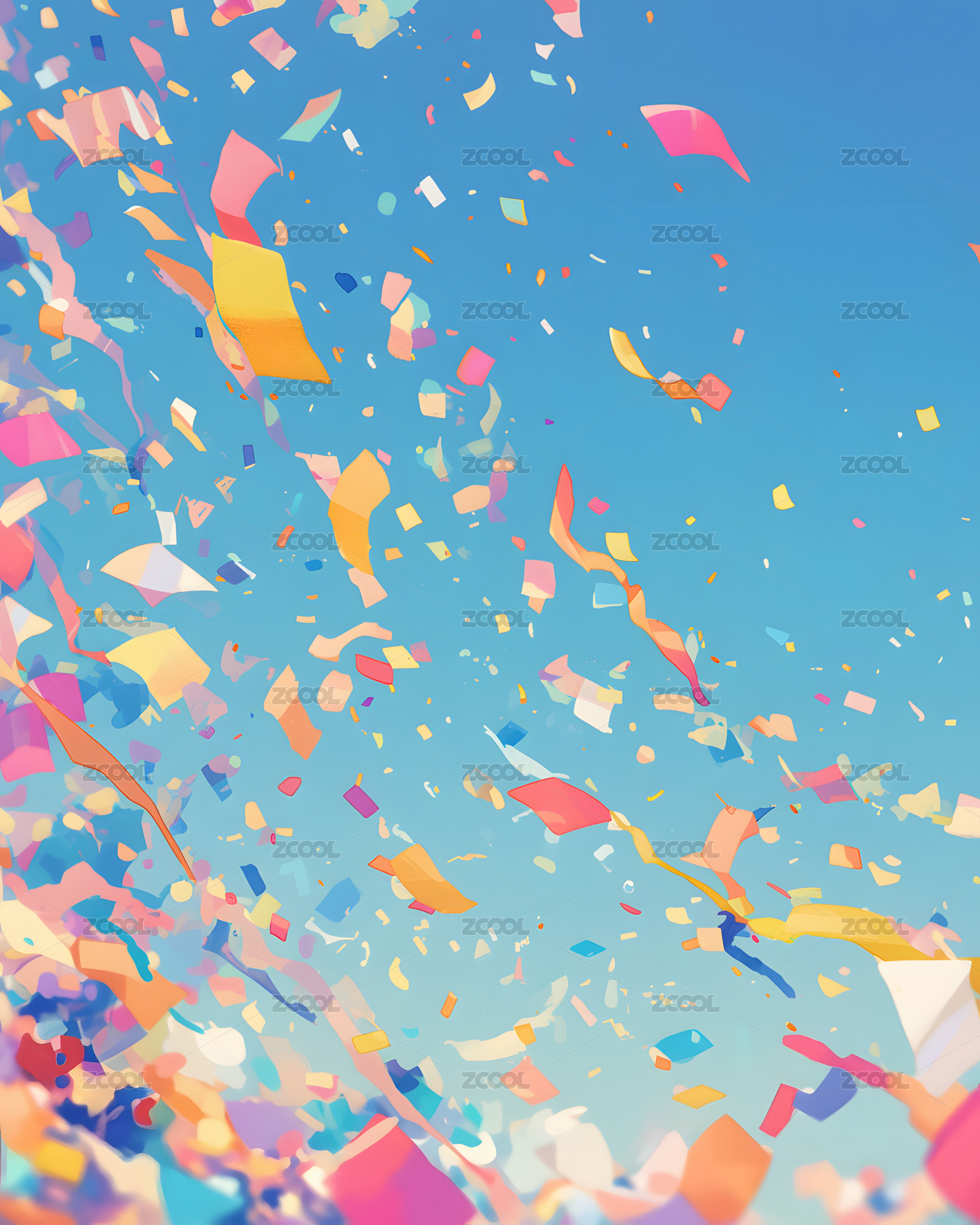 五彩纸屑飘落的天空