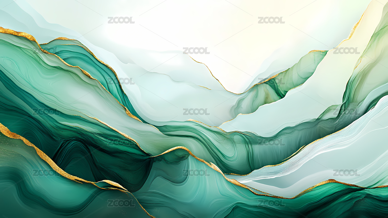 流动的绿意与金色纹理