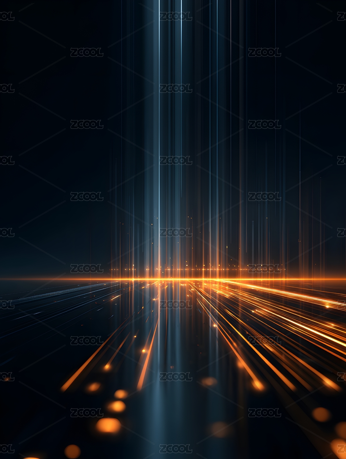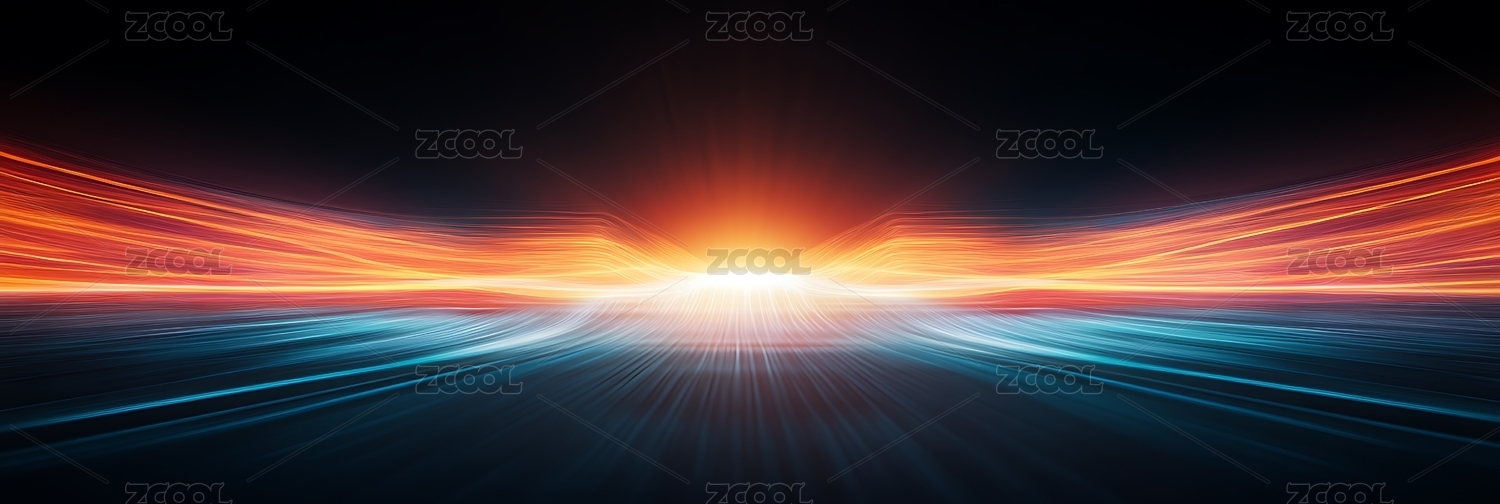 蓝橙光线交织的科技感光影场景