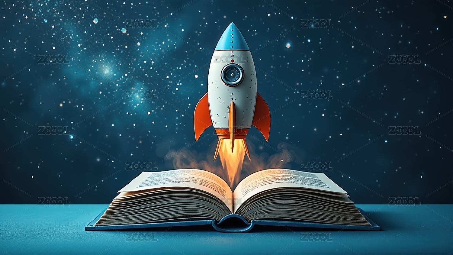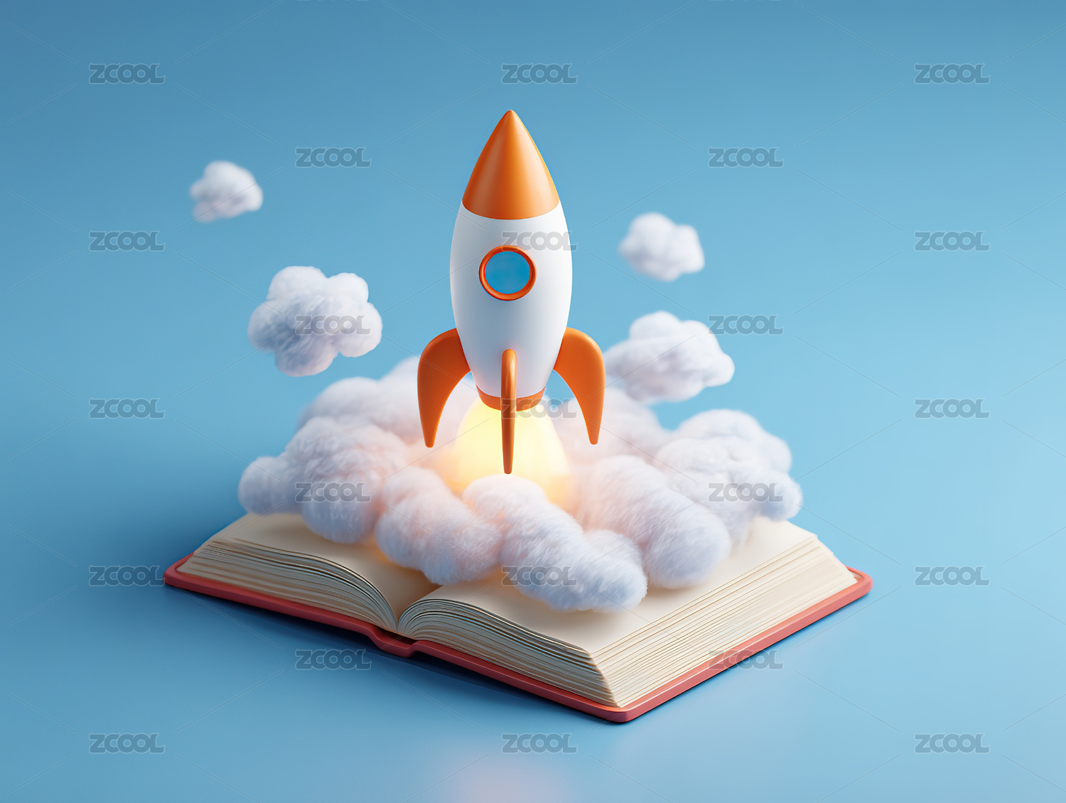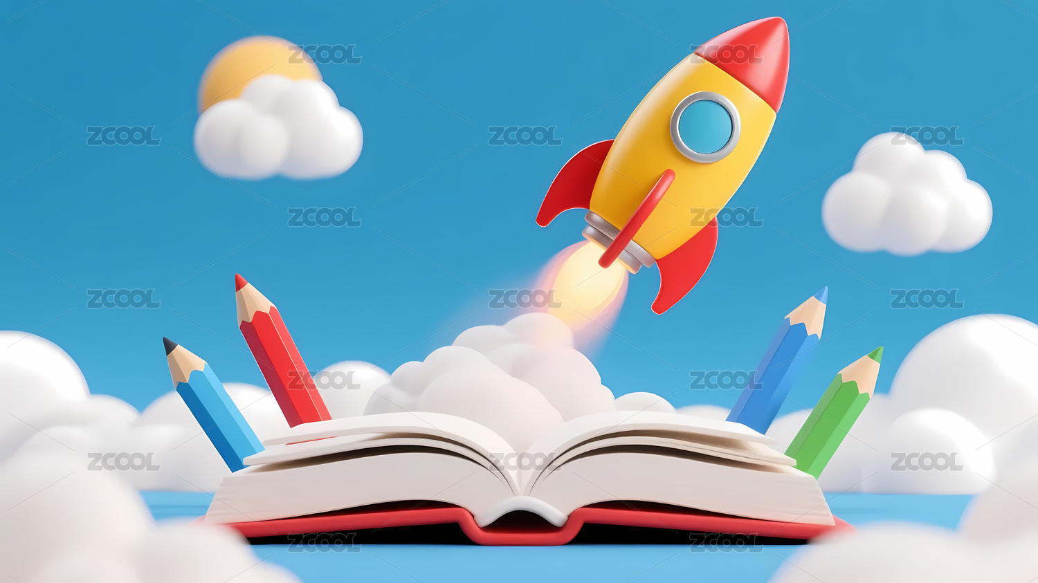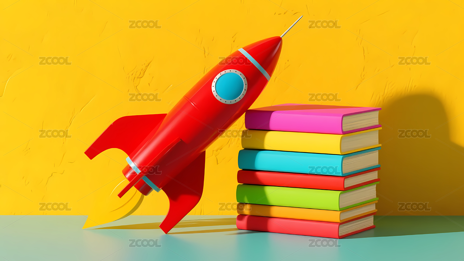彩色,红色,黄色,创意,火箭,书本,铅笔,探索,学习,卡通