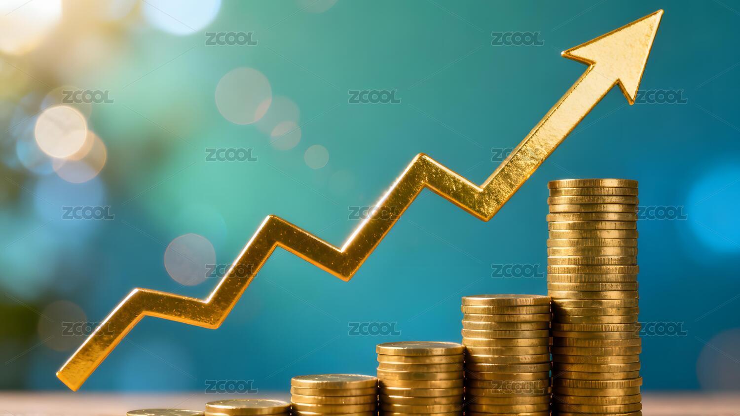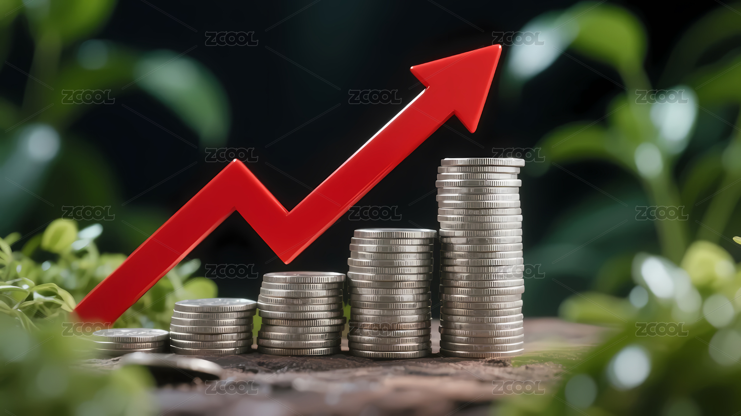 金币,比特币,财富,背景,粉色,堆叠,绿色,植物,硬币,箭头