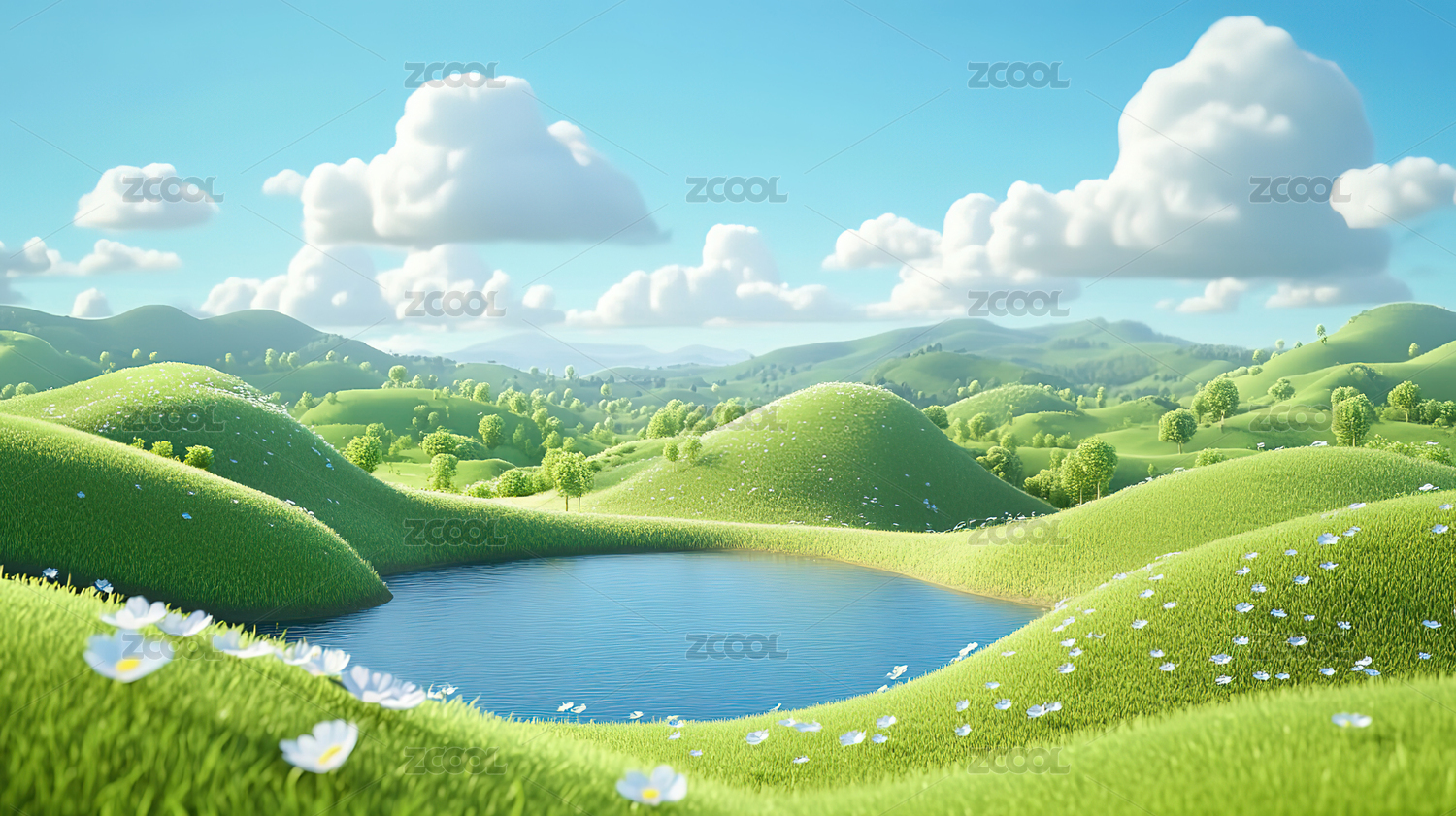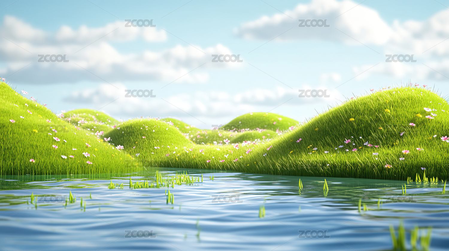 卡通3d户外草地场景