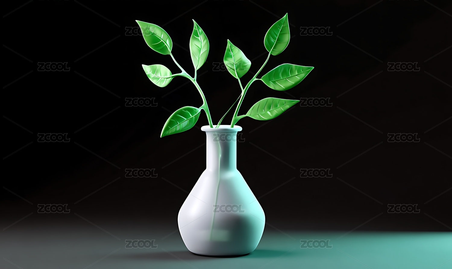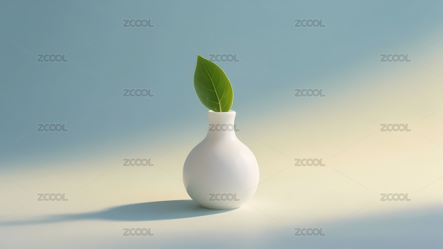 一个白色的花瓶里面有一片绿色的叶子高清图
