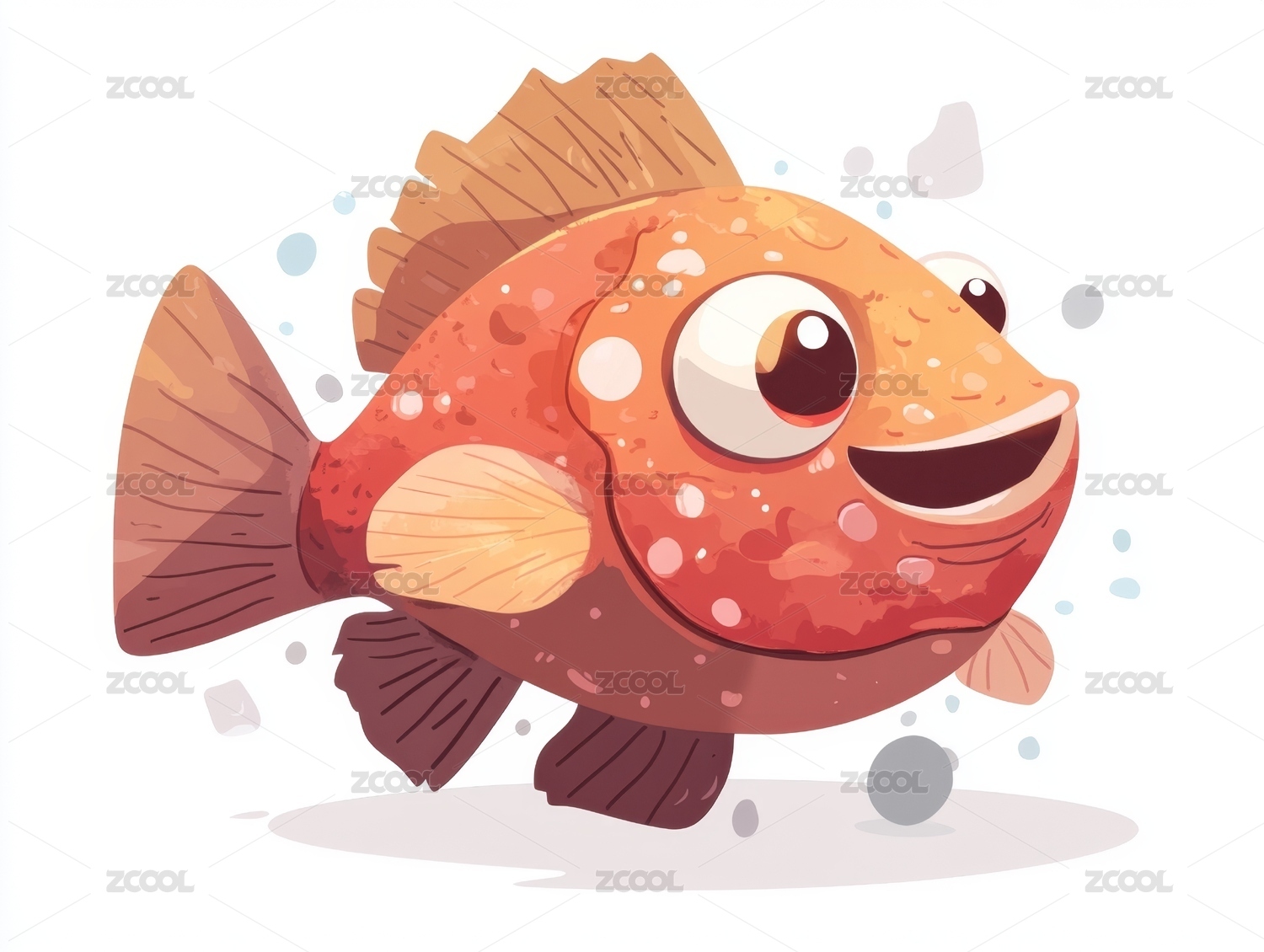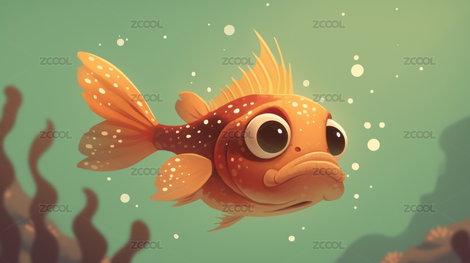 卡通,橙色,热带鱼,可爱,水下,植物,斑点,鱼鳍,有趣