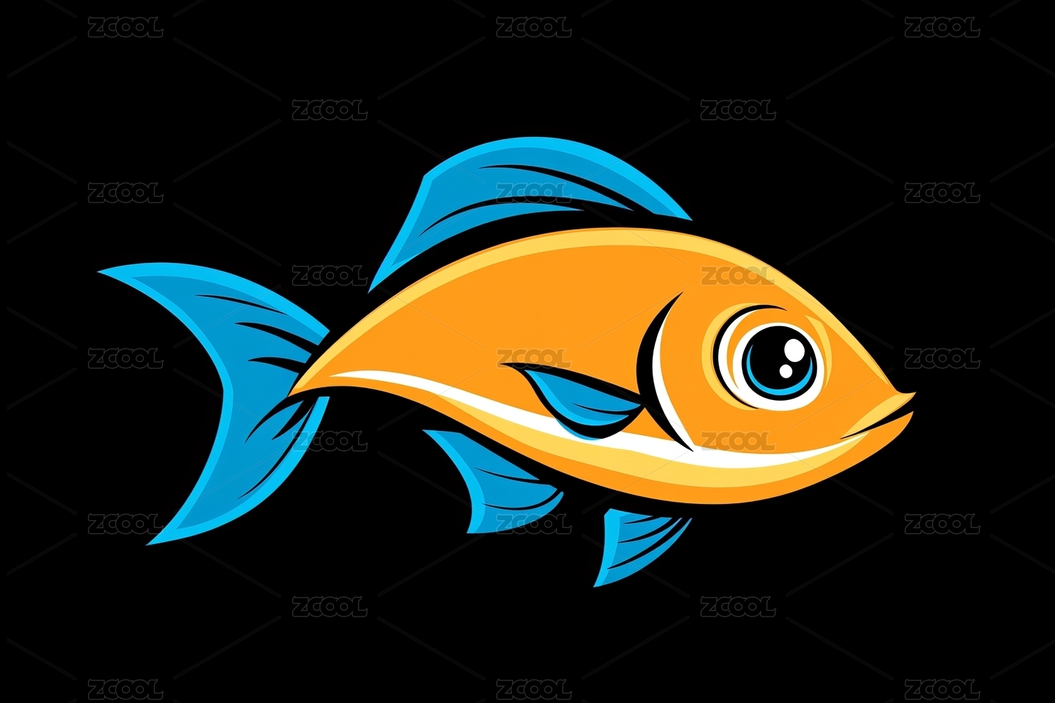 热带鱼,黄色,黑色,条纹,大眼睛,卡通,水生,动物