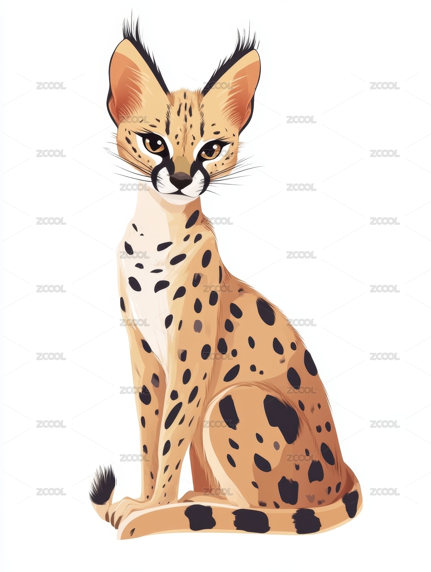 小豹子,坐姿,卡通,斑点,可爱,动物,野生,艺术