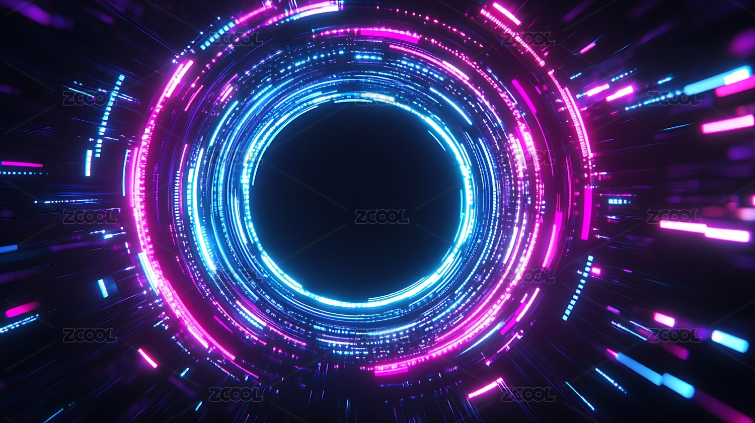 蓝紫流光构成的梦幻粒子隧道